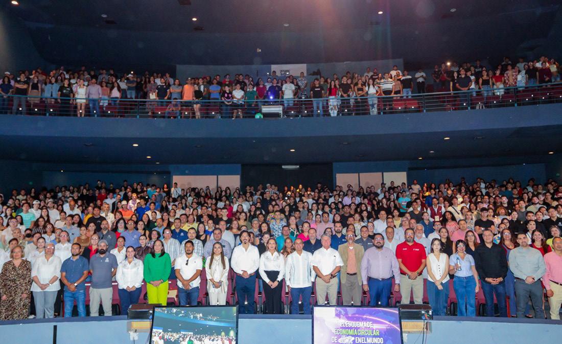 Habló de los planes de Embotelladora de Colima, que busca reciclar el 100% de las botellas que produce para el 2030; “queremos que ustedes se sumen a este sueño de tener un Mundo sin residuos con acciones muy simples como vaciar, aplastar y depositar sus botellas PET en los contenedores que tienen distribuidos en cada uno de sus campus”.