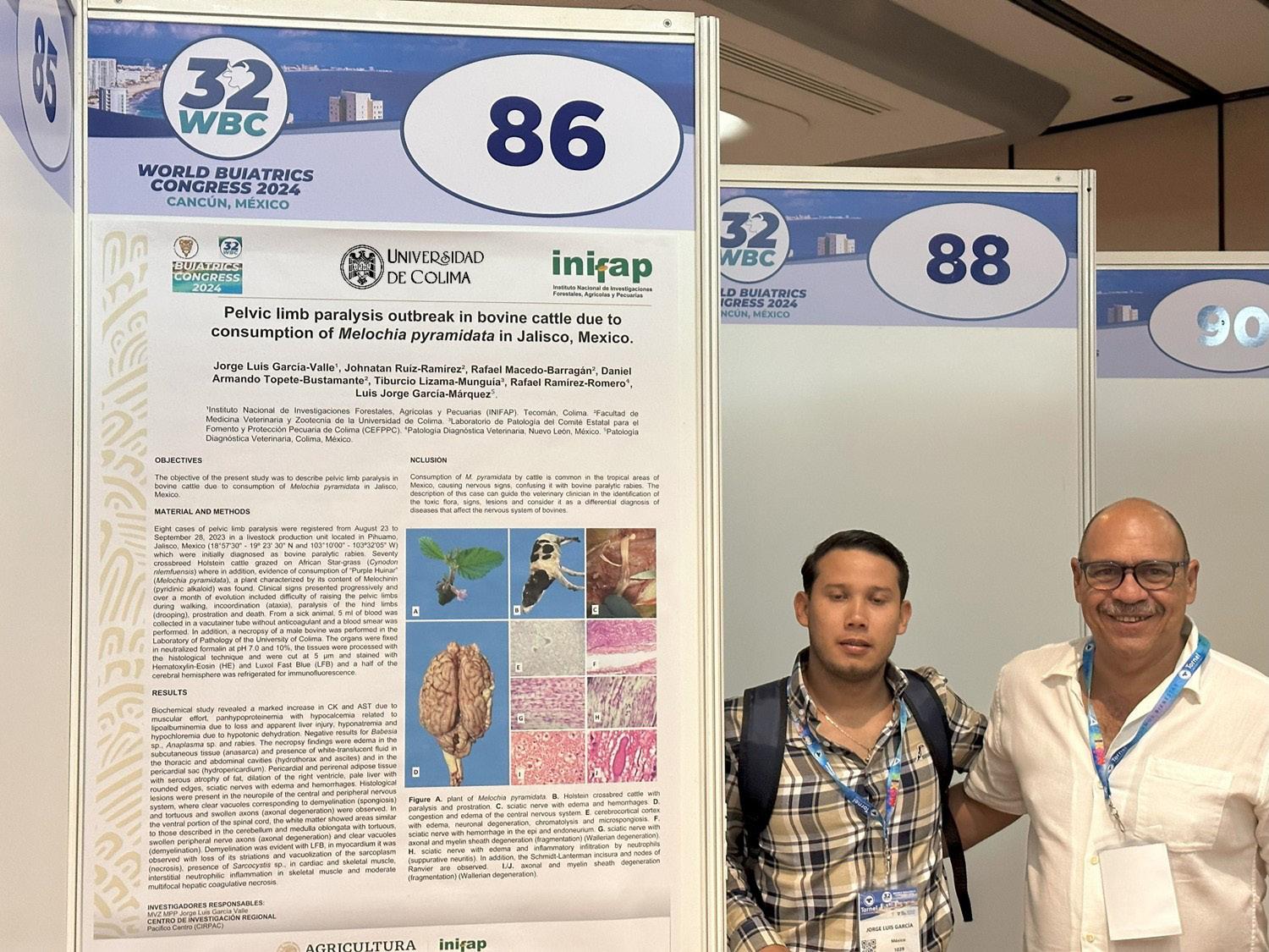 les: “ Pelvic limb paralysis outbreak in bovine cattle due to consumption of Melochia pyramidata in Jalisco, México ” (“Brote de parálisis de miembros posteriores en bovinos por consumo de Melochia Pyramidata en Jalisco, México”), en el área de Farmacología y Toxicología y: “ Conidiobolomycosis in sheep (Ovis aries) associated with Conidiobolus lamprauges in Colima, Mexico ” (“Conidiobolomicosis en ovinos (Ovis aries) asociada a Conidiobolus lamprauges en Colima, México”) en el área de Enfermedades Infecciosas.