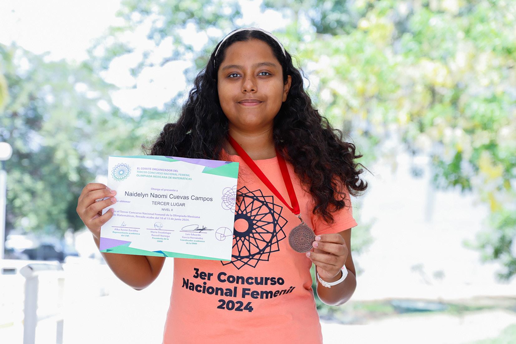 aidelyn Naomi Cuevas Campos, estudiante del Bachillerato 20 de la Universidad de Colima, ha demostrado su talento en matemáticas al obtener una medalla de bronce en el Concurso Femenil de la Olimpiada de Matemáticas realizada en el Instituto Tecnológico Autónomo de México (ITAM) en la Ciudad de México.