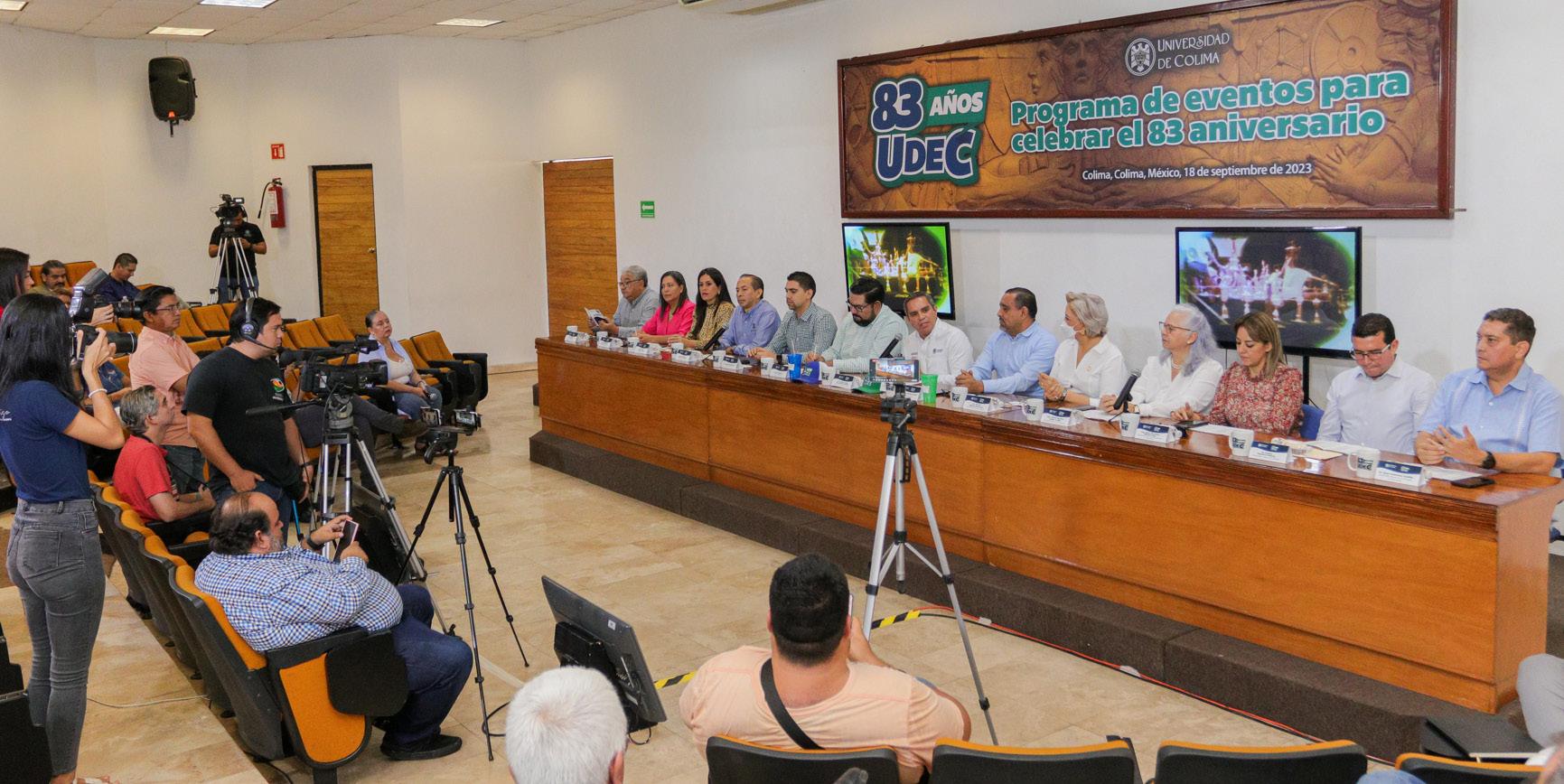 En una rueda de prensa celebrada en el Archivo Histórico, Christian Jorge Torres Ortiz Zermeño, Rector de la Universidad de Colima, presentó las 16 actividades que conformarán el programa de festejos por el 83 aniversario de la Casa de Estudios, fecha que se cumplió el pasado sábado 16.