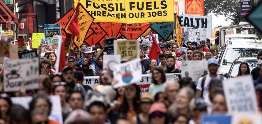 Marchan miles de activistas climáticos en Nueva York para pedir el fin de la energía fósil