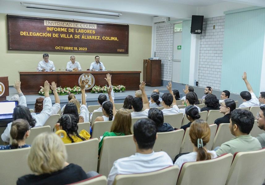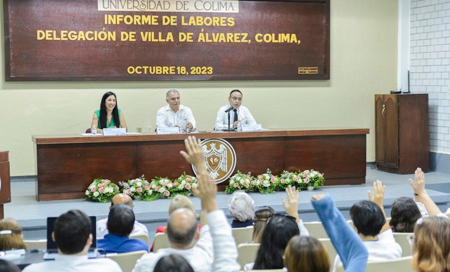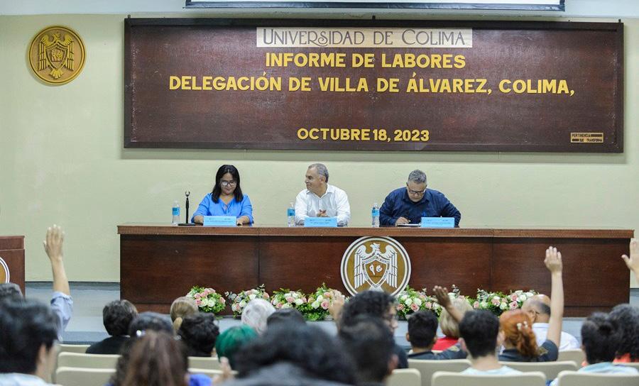 Como parte de la rendición de cuentas que realizan los directores de bachilleratos y facultades de la Universidad de Colima, una representante del director de la Facultad de Filosofía y la directora de la Facultad Lenguas Extranjeras, planteles adscritos a la Delegación Villa de Álvarez, presentaron al consejo técnico su informe de labores correspondiente al año 2023.
