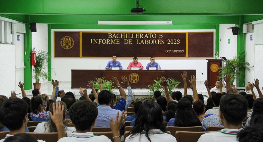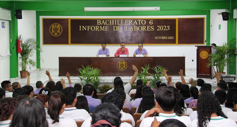 rez, Adrián López Virgen, reconoció el trabajo intenso realizado conjuntamente por estudiantes, maestros y directivos. Les pidió sentirse satisfechos por los resultados de este año e invitó a que continúen trabajando de esa manera para alcanzar las metas propuestas para el 2024. Estuvieron en el informe Martha Magaña, coordinadora general de Docencia; Susana Preciado, directora general de Educación Superior; Arianna Sánchez, directora general de Posgrado; y Hugo Barreto, director general de Servicios Administración Escolar.