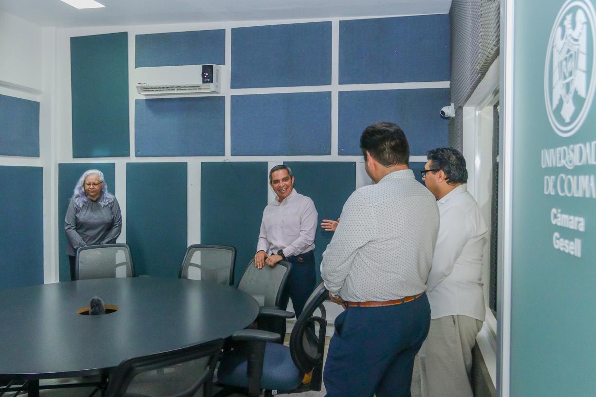 En el marco del 40 aniversario del Centro Universitario de Investigaciones Sociales (CUIS), el Rector de la Universidad de Colima, Christian Jorge Torres Ortiz Zermeño, inauguró la cámara Gesell y la sala de docencia híbrida. Estos nuevos espacios contribuirán a una mayor vinculación del Centro, tanto dentro como fuera de la Universidad.