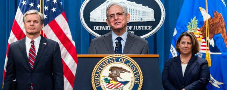El fiscal general de EUA, Merrick Garland, hizo el anuncio en una rueda de prensa acompañado por la “número dos” del Departamento de Justicia, Lisa O. Monaco; el director general del FBI, Christopher Wray; y el fiscal general adjunto para Seguridad Nacional, Matthew Olsen.