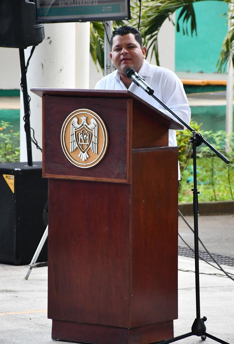 Juan Diego Gaytán Rodríguez, delegado en Colima, en representación del Rector Christian Jorge Torres Ortiz Zermeño, felicitó a la comunidad escolar y académica del este bachillerato por la nutrida actividad que desarrollan; asimismo, destacó el aniversario del plantel y su evolución en beneficio de la sociedad, e invitó a seguir trabajando como siempre lo han hecho.