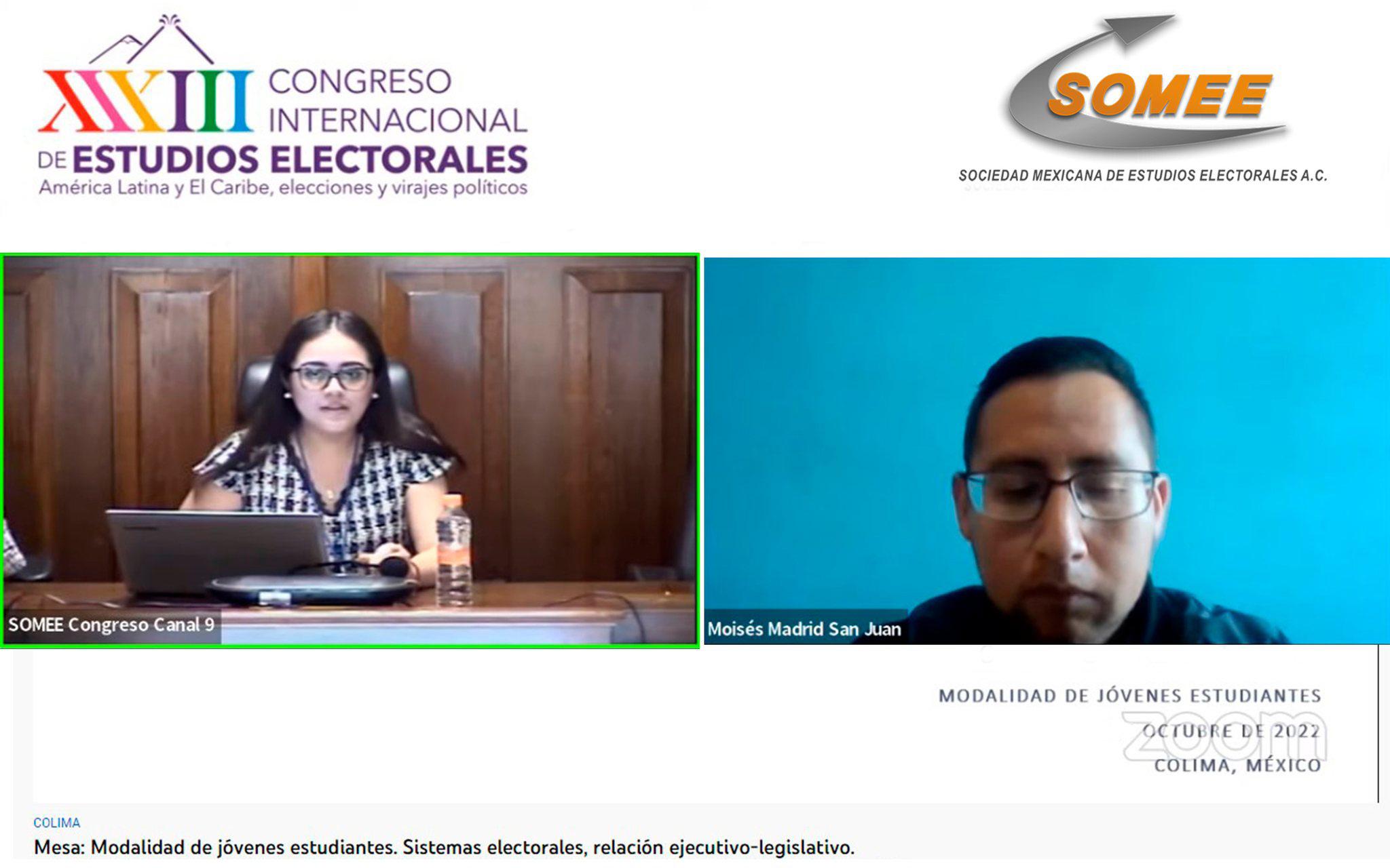 En el marco del XXXIII Congreso Internacional de Estudios Electorales que se realizó en la Universidad de Colima, Ashtrid Lara López, Othón Ordaz Gutiérrez y Alfredo Cortés Llamas presentaron sus trabajos de investigación en la mesa: “Modalidad de jóvenes estudiantes. Sistemas electorales, relación ejecutivo-legislativo”.