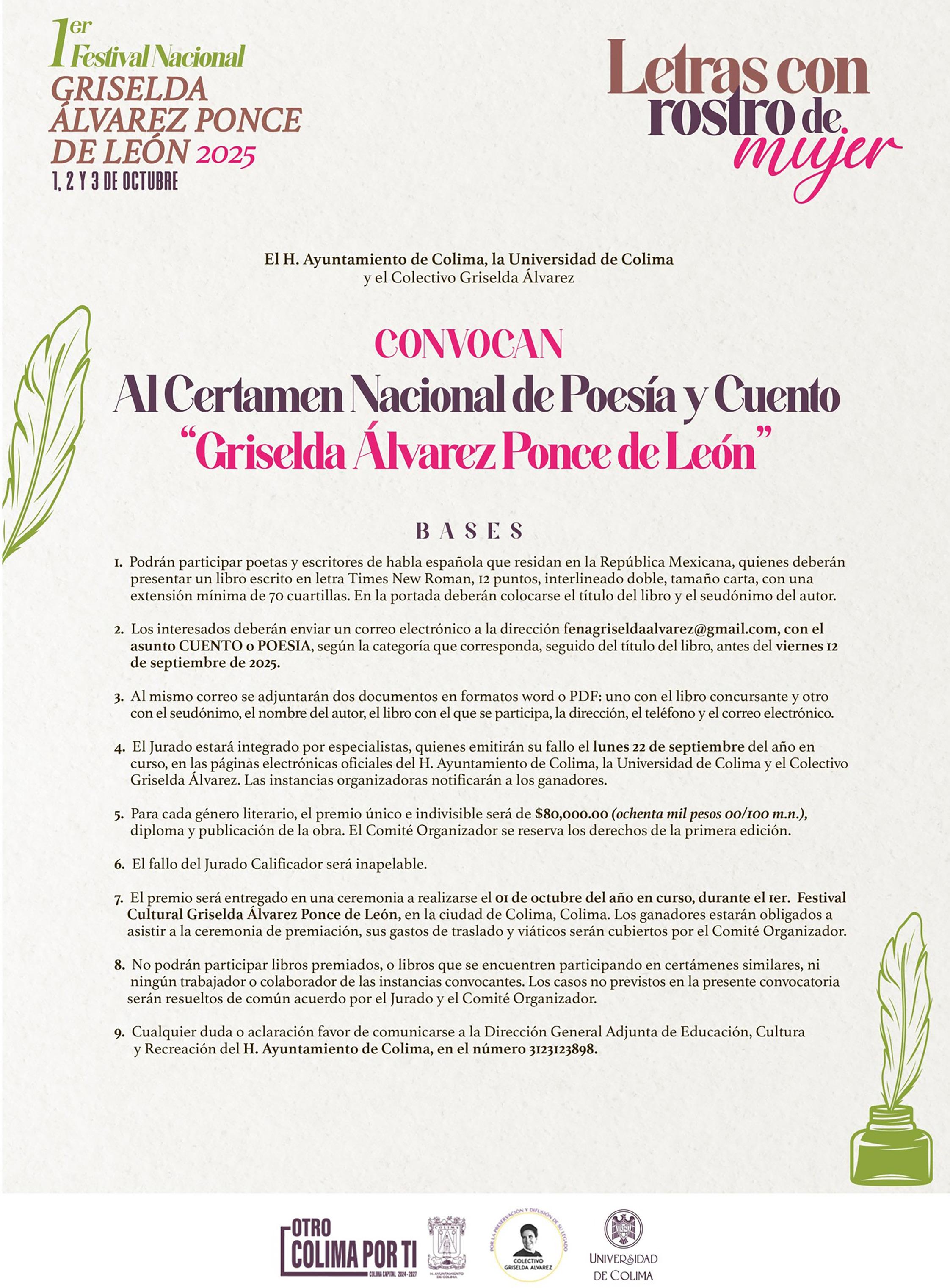 Ese galardón, promovido por la Secretaría de Cultura, el INBAL y la Universidad de Colima (UdeC), fortalece el papel de nuestra institución como puente entre la creación literaria nacional y la sociedad colimense.