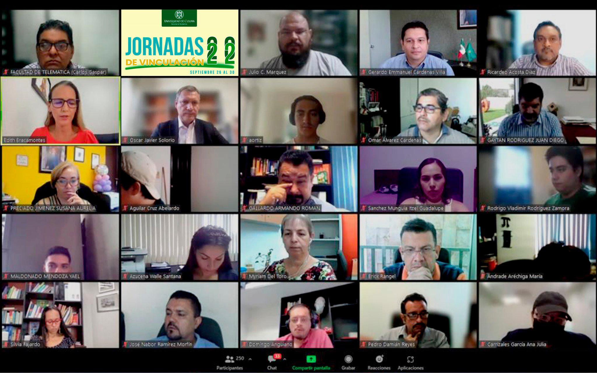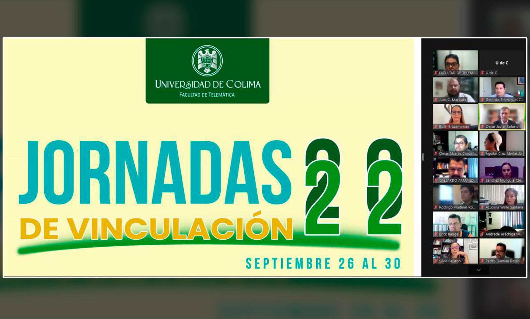 La mañana de este lunes 26 de septiembre iniciaron las actividades virtuales de las XXII Jornadas de Vinculación de la Facultad de Telemática de la Universidad de Colima, que se realizarán hasta el viernes 30 de septiembre con la participación de grandes empresas reconocidas a nivel nacional e internacional en el área.