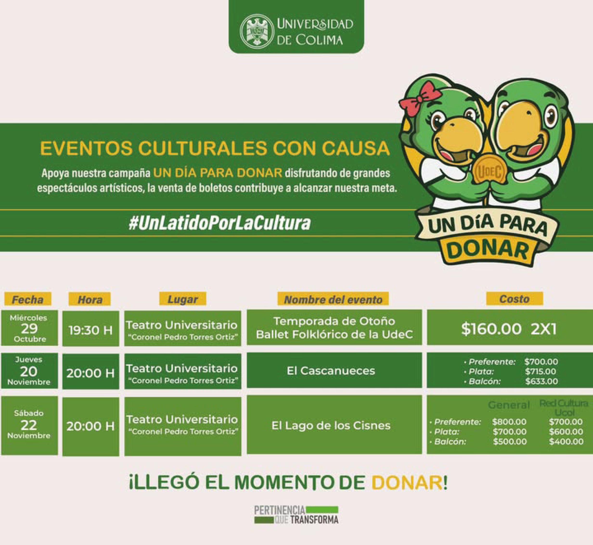 La recaudación se está realizando del 6 de octubre al 22 de noviembre, periodo en el que se desarrollan actividades y eventos culturales. Invitó a la comunidad universitaria y a la sociedad colimense a participar con aportaciones de cualquier monto, con el propósito de fortalecer este año la infraestructura cultural de la UdeC.