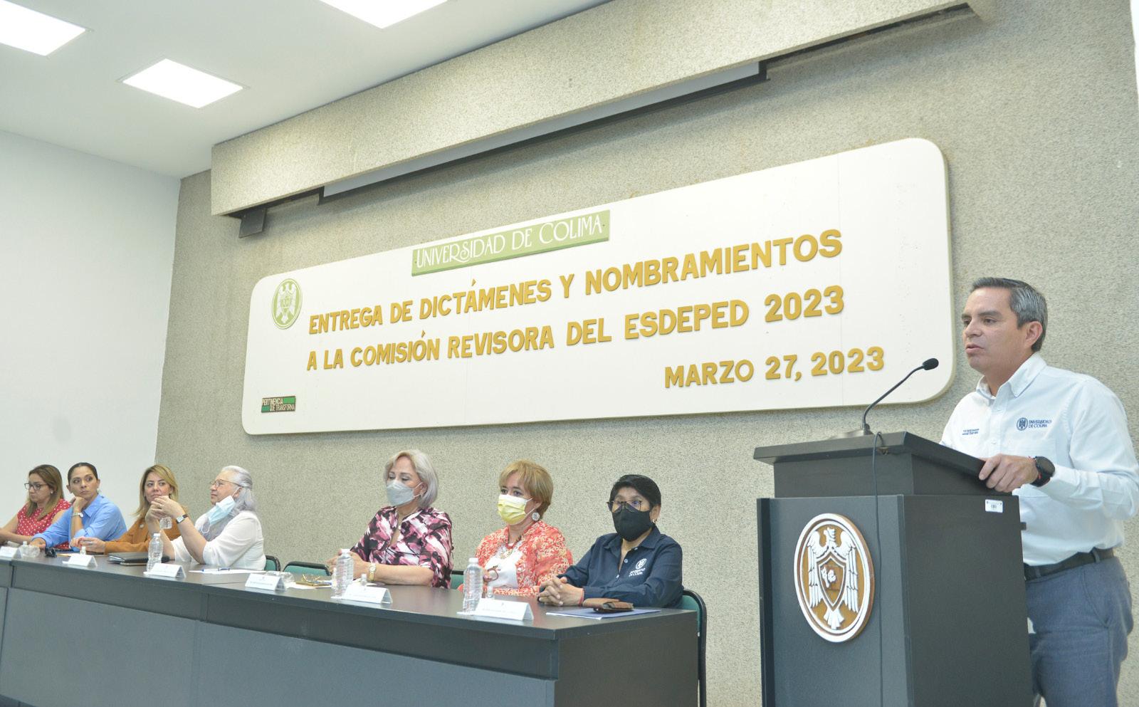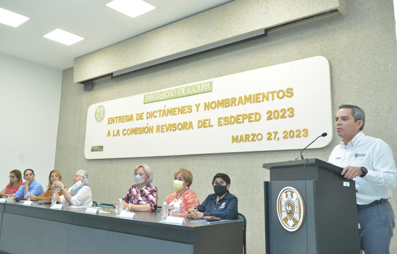El Rector de la Universidad de Colima, Christian Torres Ortiz Zermeño, entregó 259 dictámenes del Programa de Estímulos al Desempeño del Personal Docente (ESDEPED), así como 5 nombramientos a la Comisión Revisora de este programa. Estos últimos son los encargados de revisar la documentación de aquellos investigadores que quieran apelar al resultado de los dictámenes.