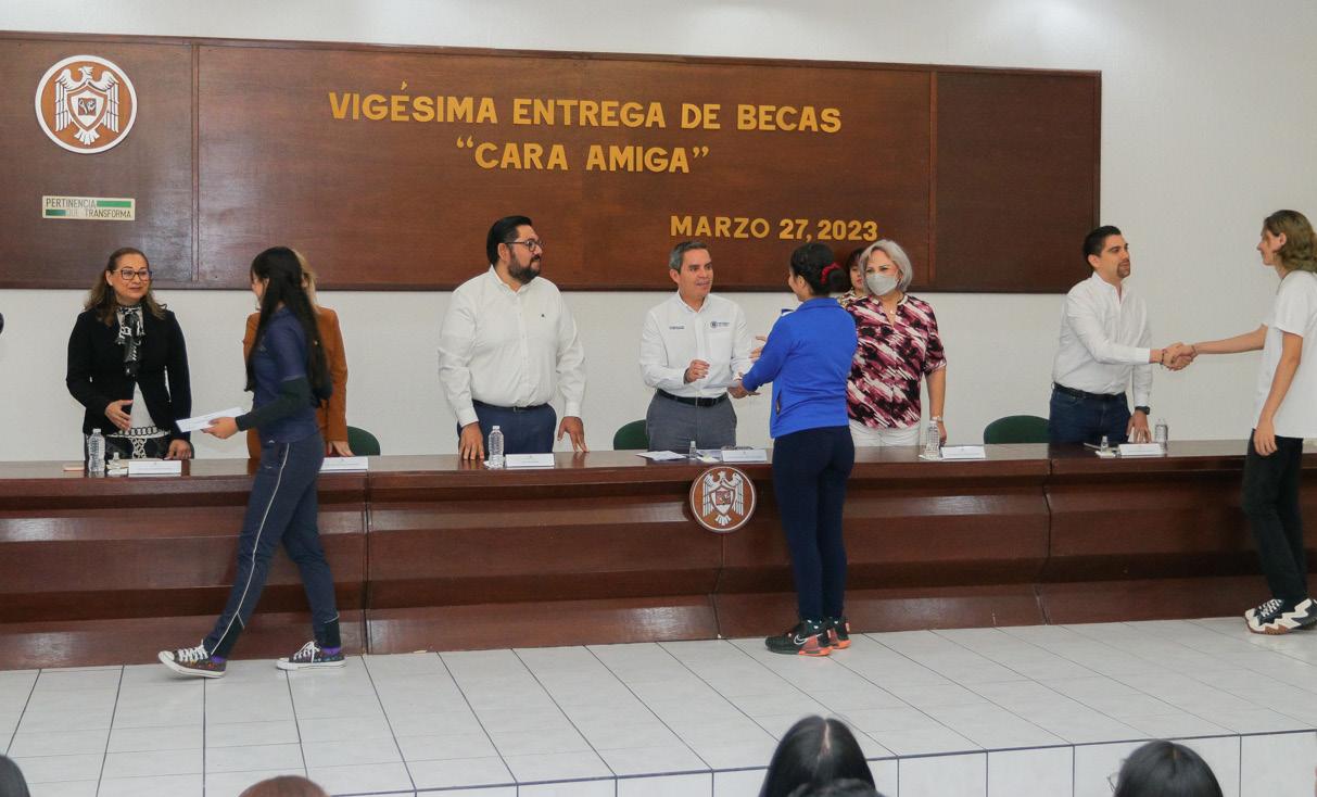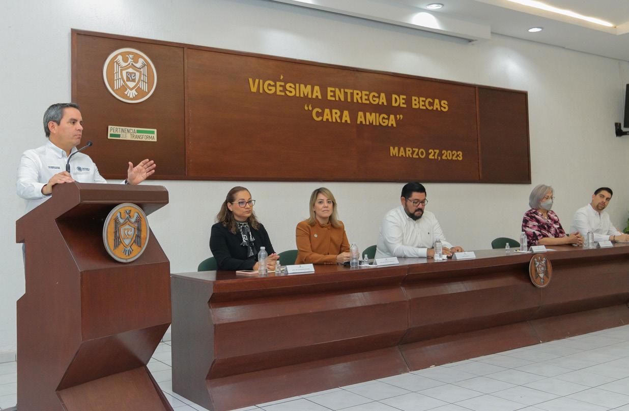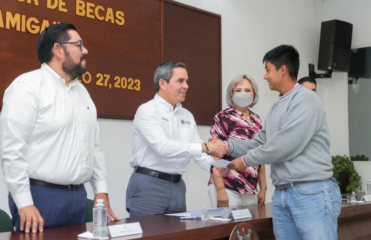 esfuerzo para que esto suceda; están en una universidad pública que hace un enorme esfuerzo para brindarles la educación que ustedes reciben y el gran objetivo que tenemos no es solo que ingresen, sino que se mantengan y logren egresar”. Comentó que la Universidad seguirá fomentando esta beca para que alcance a un mayor número de jóvenes de licenciatura; “no claudiquen, no se den por vencidos por ninguna razón que puedan estar viviendo, si tienen alguna dificultad que se escape a lo que ustedes puedan resolver, acérquense a nosotros para poderles apoyar y no tengan que cancelar este proyecto de