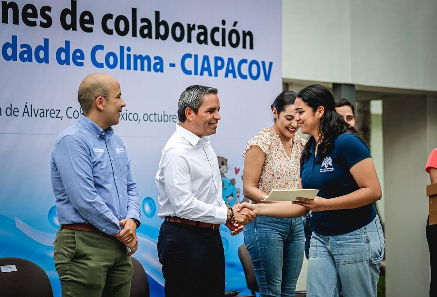 Como parte de las acciones acordadas el pasado mes de junio en un convenio de colaboración, la Universidad de Colima y CiapaCov inauguraron en el campus Villa Álvarez una planta purificadora de agua, un sistema de recolección de agua de lluvia y entregaron reconocimientos a 3 profesores y 15 estudiantes de la Facultad de Ingeniería Civil que realizaron un levantamiento topográfico en el arroyo Pereyra para sacar el drenaje de esa zona. El acto fue presidido por la gobernadora Indira Vizcaíno Silva.