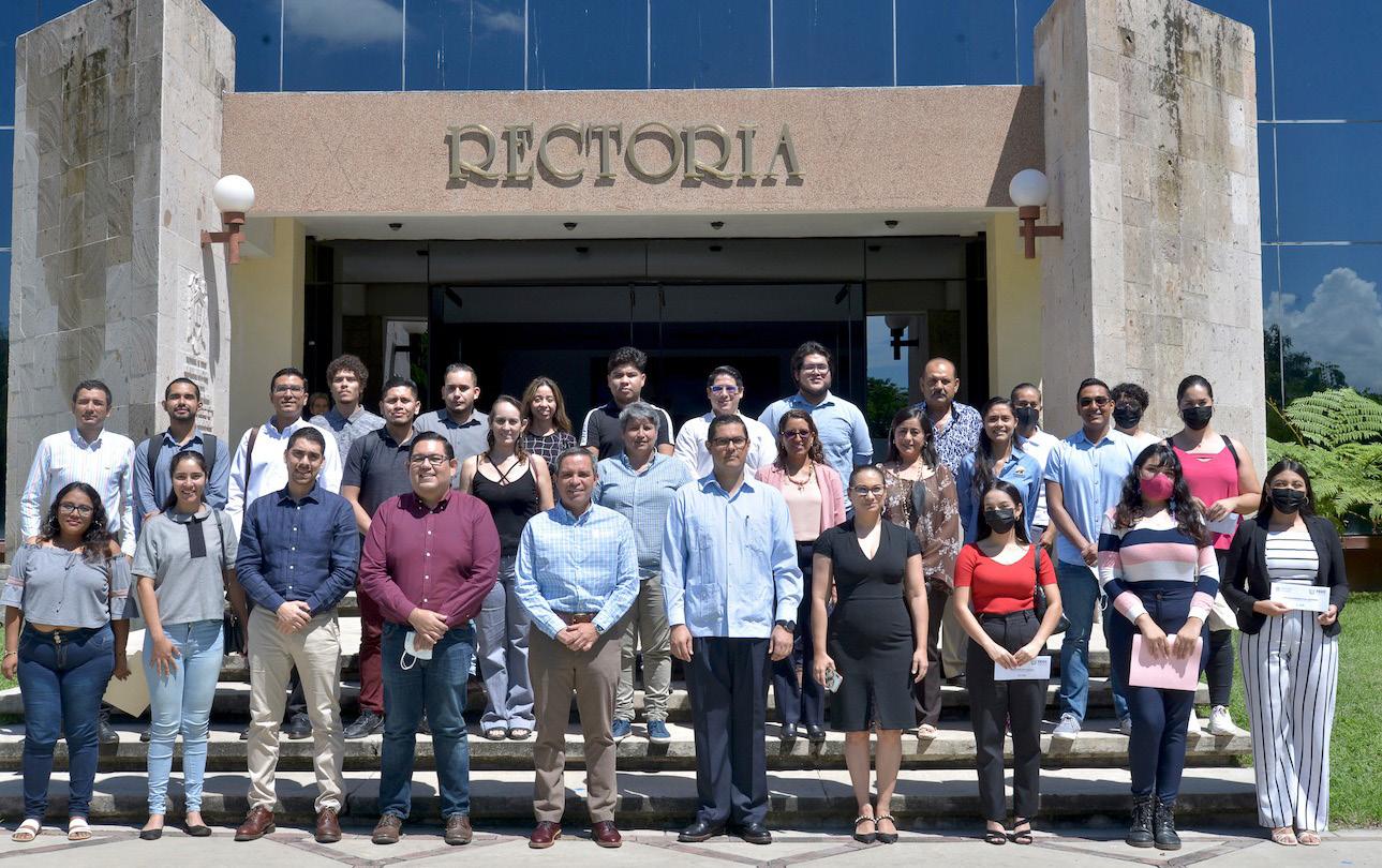 En todas las entregas, acompañaron al Rector en el presídium el secretario general, Joel Nino, la directora general de Servicios Universitarios, Ana Lilia Moreno Osegueda y Camilo García, presidente de la FEC.