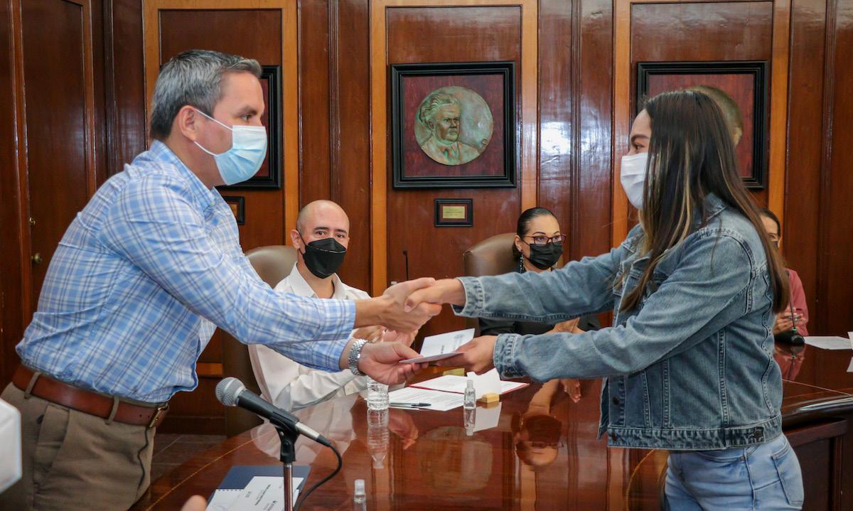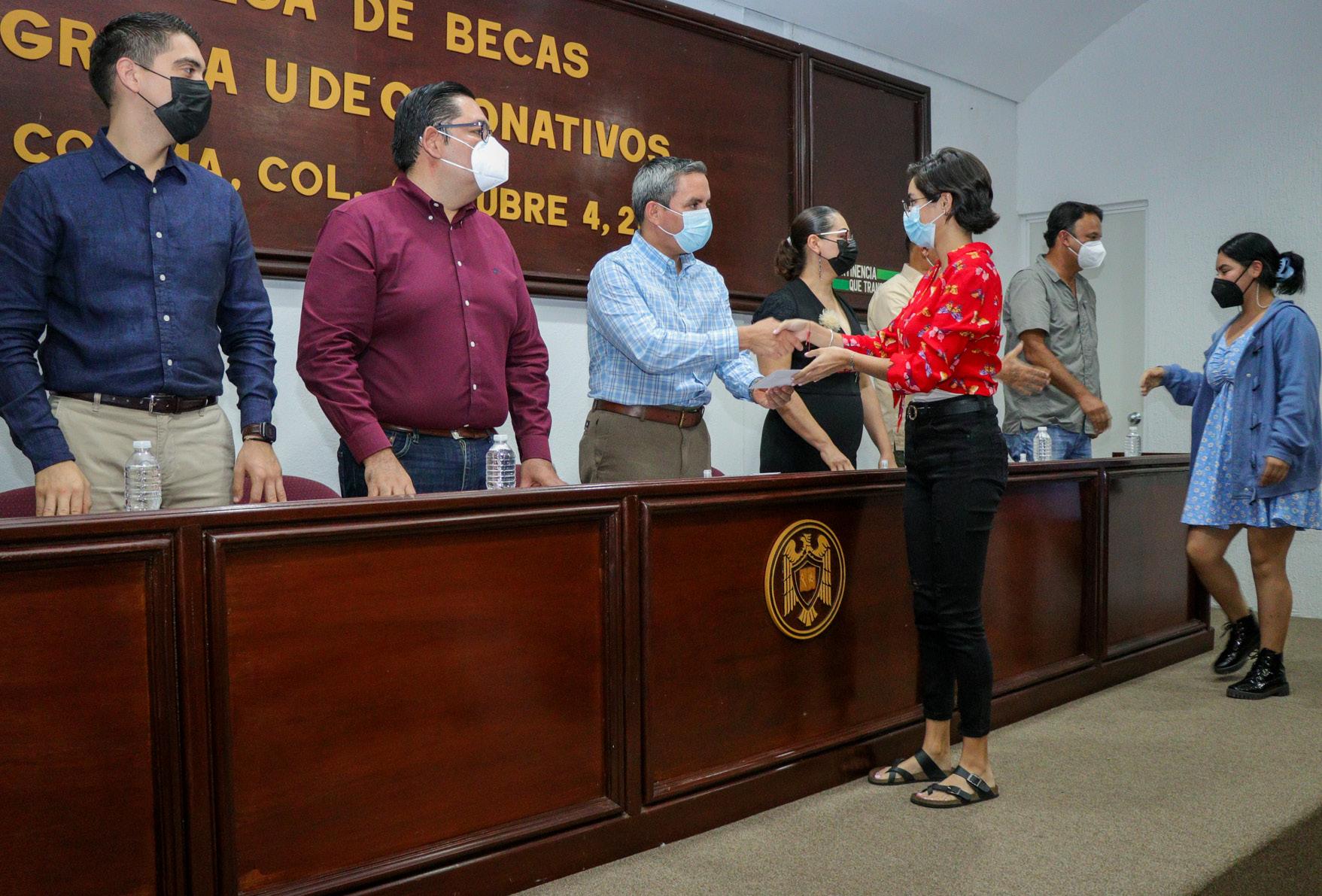 La Máxima Casa de Estudios en el estado y la Federación de Egresados de la Universidad de Colima (FEUC) entregaron este martes la Beca de Titulación de “Apoyo al Egreso FEUC 2022” a 15 egresados y egresadas de esta Casa de Estudios, para que cubran el trámite administrativo de este proceso.