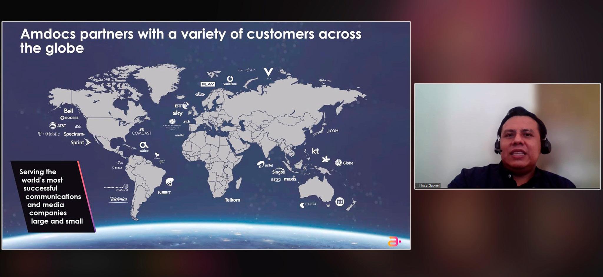 Señaló que Amdocs es una compañía que se dedica a dar soluciones a compañías de telecomunicaciones: “Va más allá de ser una empresa de software”; asimismo, dijo que tiene más de 30 mil empleados alrededor del mundo, más de 40 años de experiencia en la industria de comunicaciones, y que es una empresa nacida en Israel.
