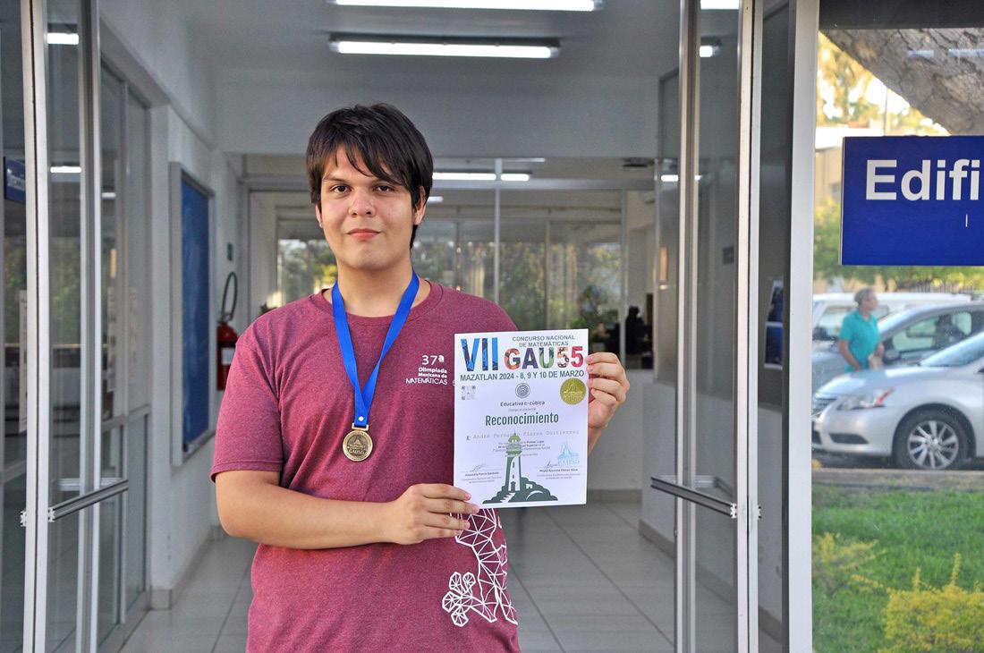 El estudiante de la Licenciatura en Matemáticas de la Facultad de Ciencias, André Fernández Flores Gutiérrez, ganó la medalla de oro del VII Concurso Nacional de Matemáticas Gau55 2024, en el que participaron estudiantes de todos los