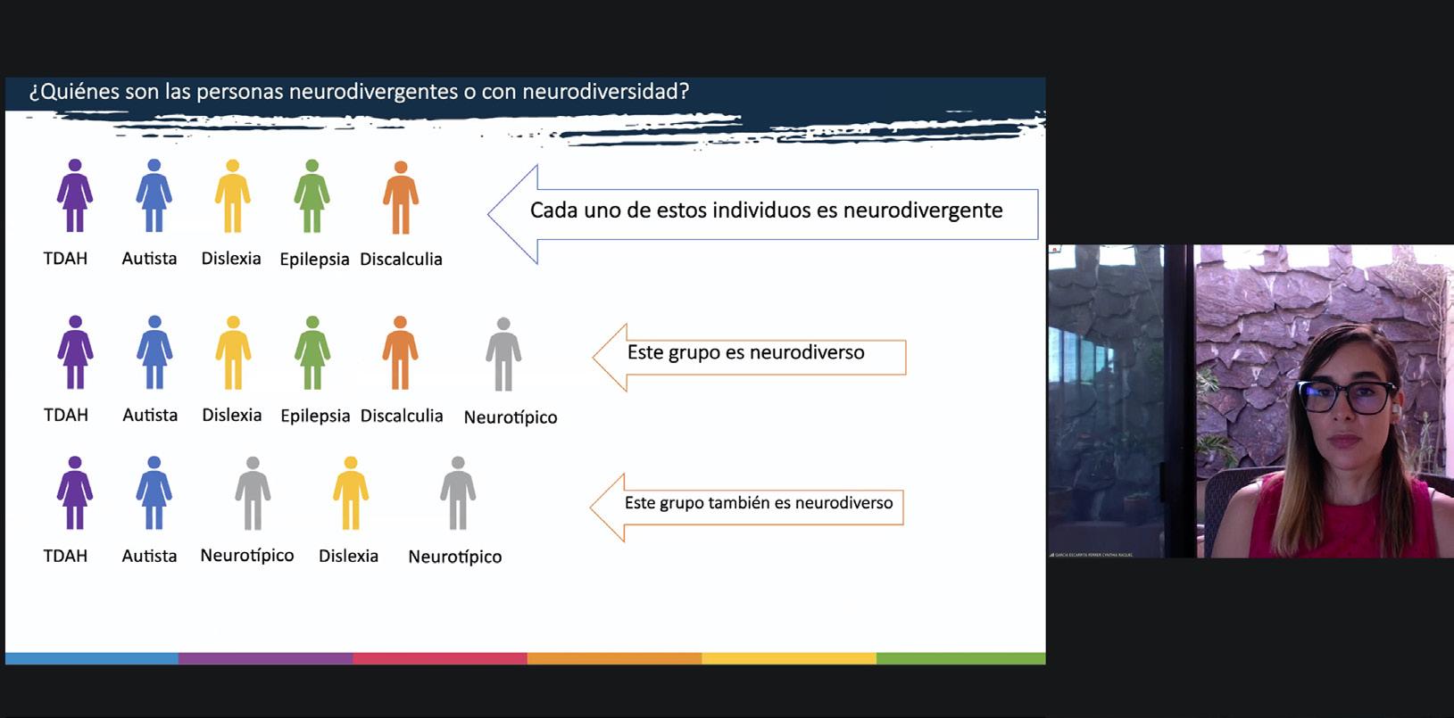 Otra experta, Norma Guadalupe Márquez Cabellos, abordó el desafío que representa para las instituciones educativas la atención a personas neurodiversas, de manera especial para las y los docentes, al ser un tema nuevo para el sistema educativo mexicano.