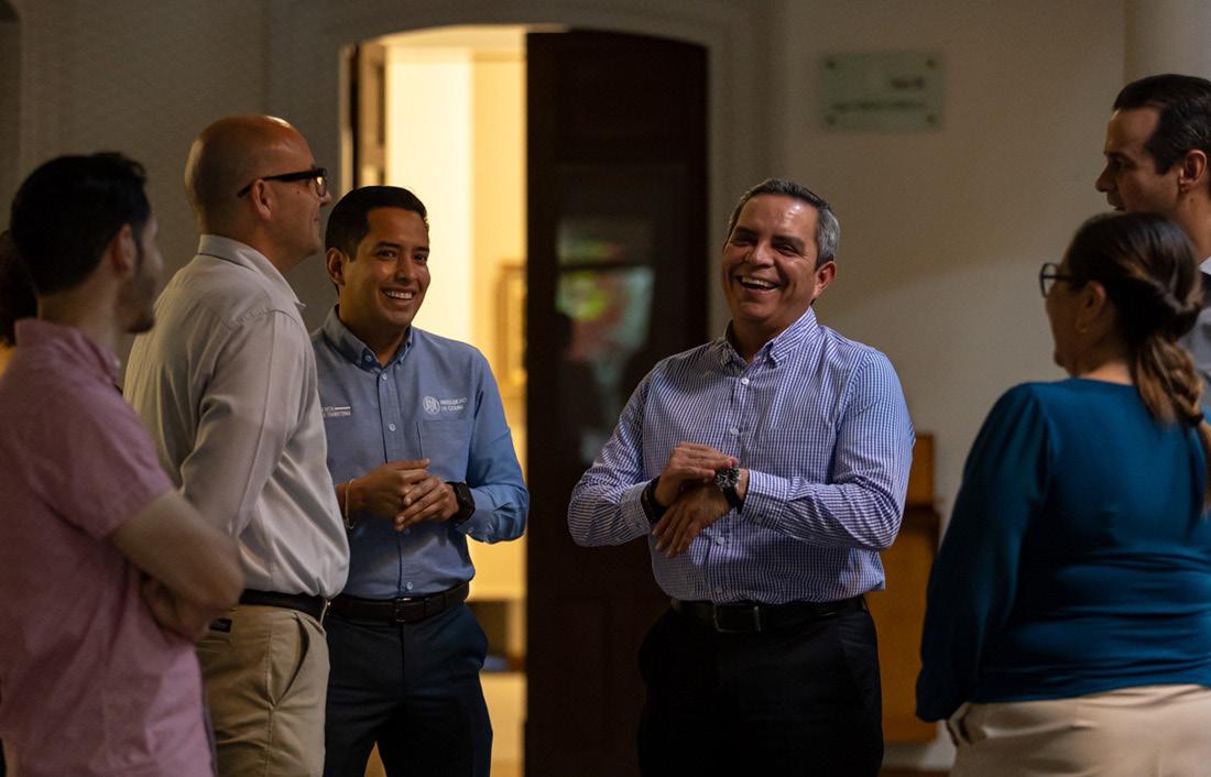 Acompañando al Rector estuvieron: Heidy Gómez Barranco, coordinadora de la Red de Vivienda y Hábitat Sustentable de México; Carlos Javier Esparza López, líder del Cuerpo Académico 25 de la UdeC; Jesús Omar Brizuela Padilla, delegado del Campus Coquimatlán; y Alfonso Cabrera Macedo, director de la Facultad de Arquitectura y Diseño de la UdeC (FAyD).