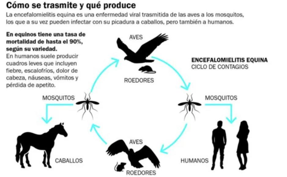 Asimismo, la cartera recordó que el vector que genera la infección de encefalitis equina en humanos es el mosquito y remarcó la importancia de eliminar potenciales criaderos, de utilizar repelentes y vestir con ropa adecuada al momento de estar al aire libre.