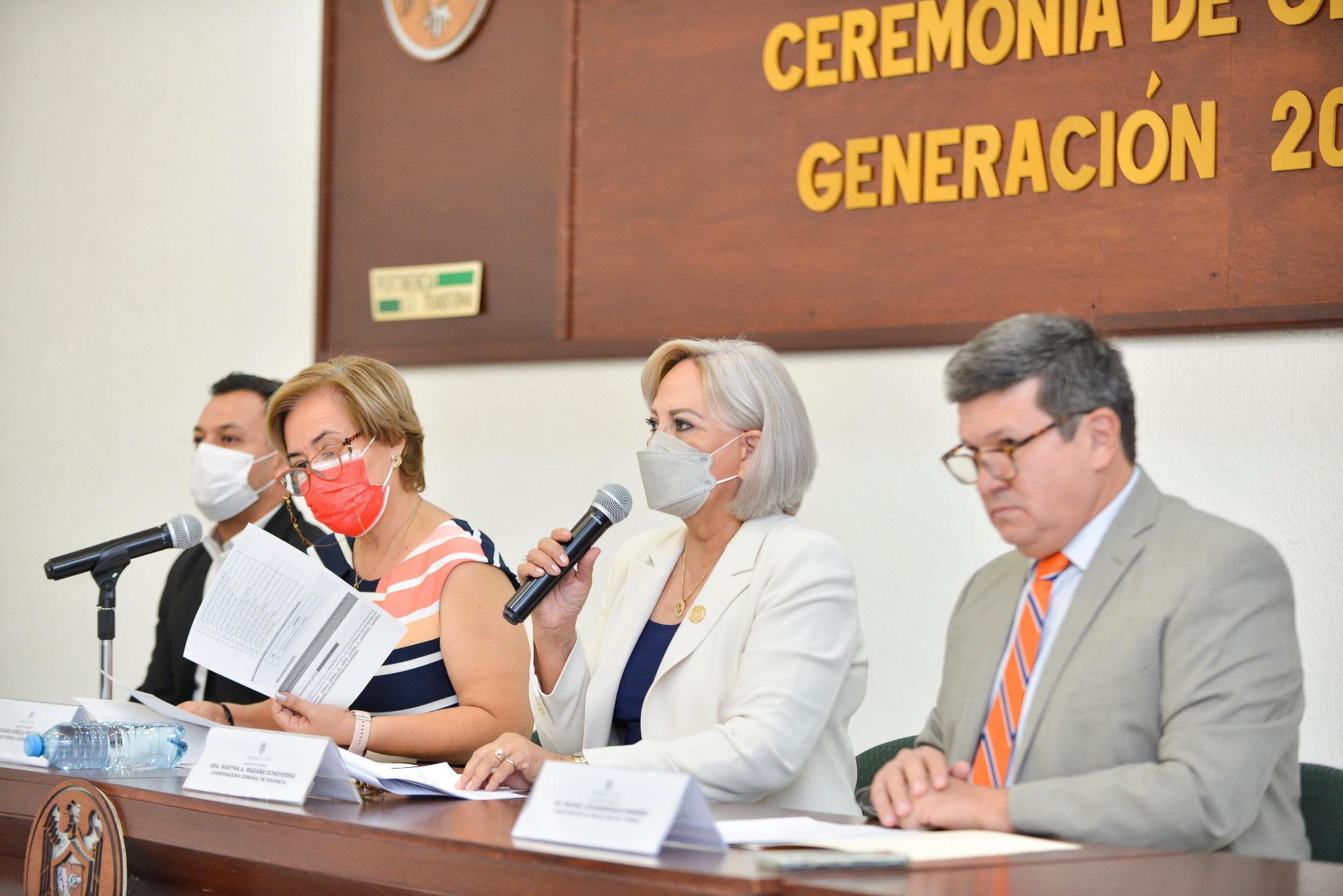 Marta Alicia Magaña Echeverría, coordinadora general de Docencia, dijo que los jóvenes que hoy egresan adquirieron las competencias necesarias para administrar y dirigir organizaciones dedicadas a la operación turística con alcances regionales, nacionales e internacionales: “Aprovechen las experiencias formativas que tuvieron en toda su carrera, en especial durante las estancias profesionales, y con estos conocimientos y habilidades desempéñense de manera ética y responsable, con gran entusiasmo y siempre esforzándose por mejorar y continuar aprendiendo”.
