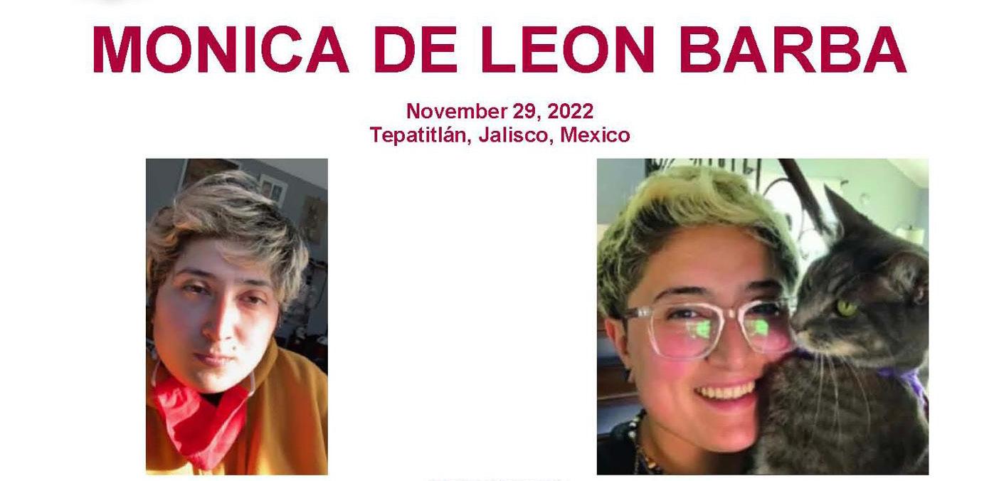Mónica de León Barba fue secuestrada el 29 de noviembre de 2022 mientras caminaba a casa con su perro en Tepatitlán, Jalisco, según información compartida por el FBI.