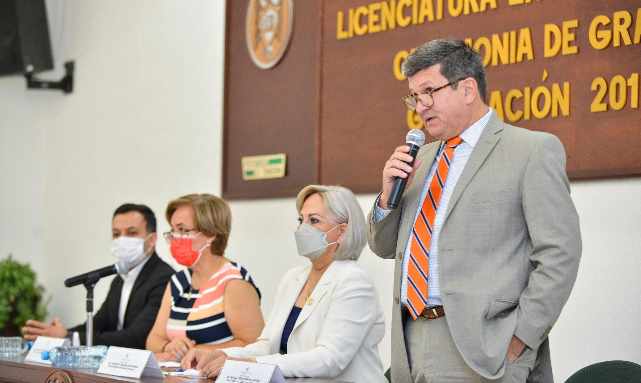 A las y los titulados, el doctor Rafael Covarrubias Ramírez, director del plantel, les dijo que “el Turismo es un motor que impulsa la solidaridad y hace propicio al desarrollo social y económico en todos sus ámbitos; exige que se incorporen al ámbito de la gestión turística dentro un marco