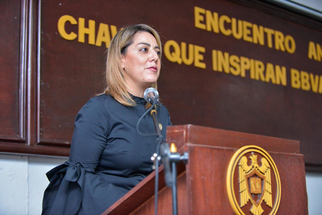 En nombre de las y los beneficiados, Esmeralda Rivera Vázquez, egresada de la Facultad de Pedagogía, hizo un recuento del apoyo recibido por la Fundación BBVA, que comenzó desde que estudiaba la secundaria, continuó