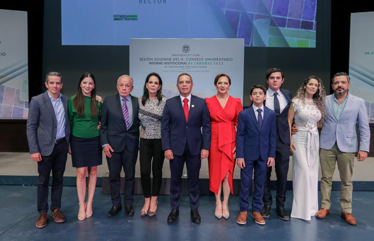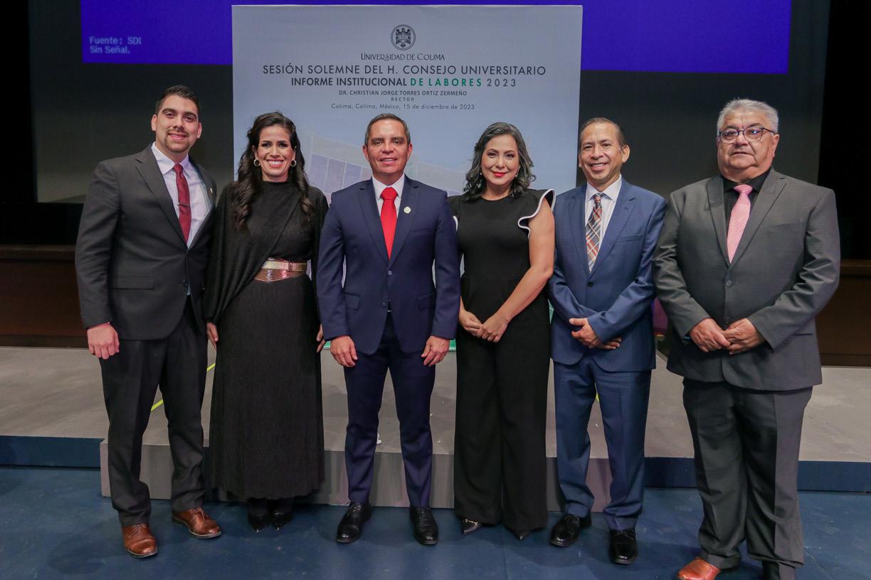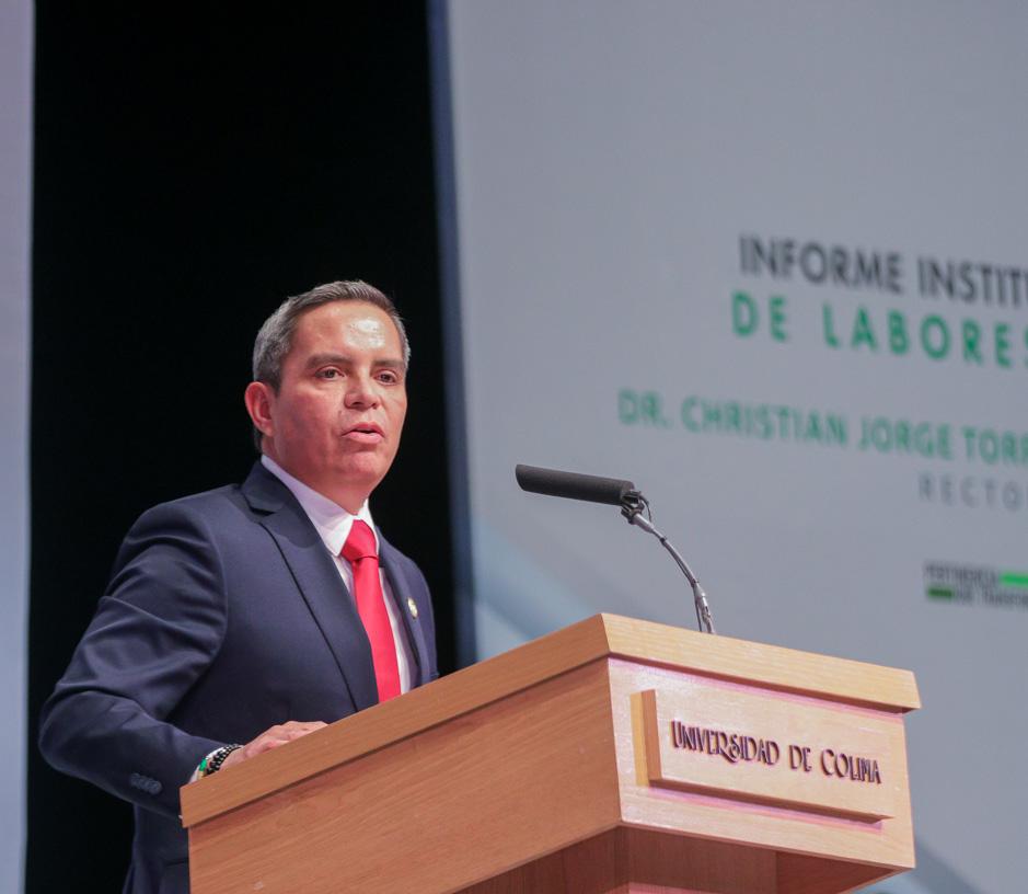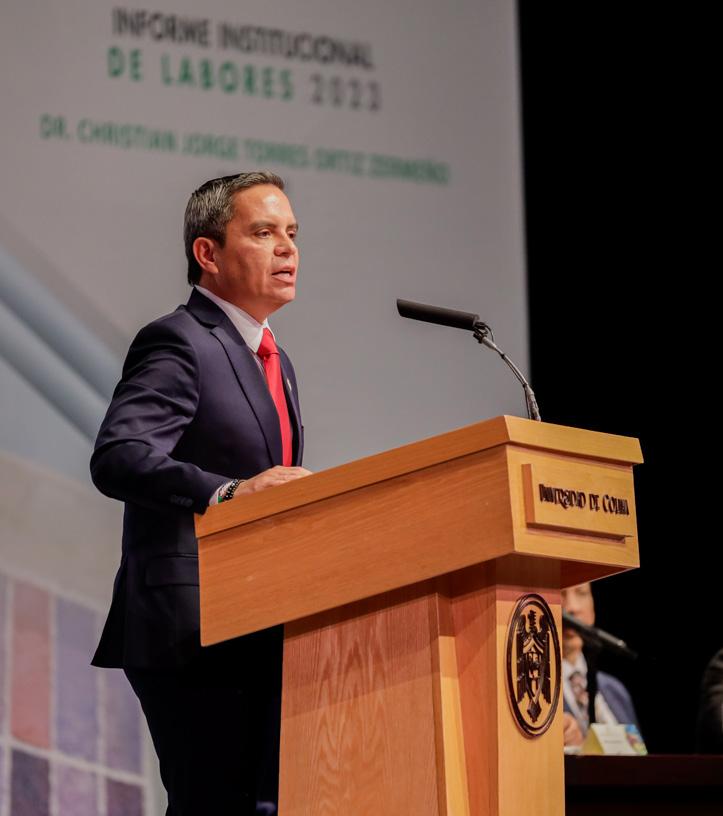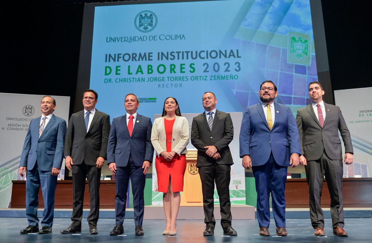 Ante un Teatro Universitario lleno de invitados y concejales integrantes del Consejo Universitario, máximo órgano de Gobierno de la Universidad de Colima, el Rector Christian Jorge Torres Ortiz Zermeño informó a la comunidad universitaria y a la sociedad en general sobre las acciones más importantes realizadas por la institución educativa a lo largo de este 2023.
