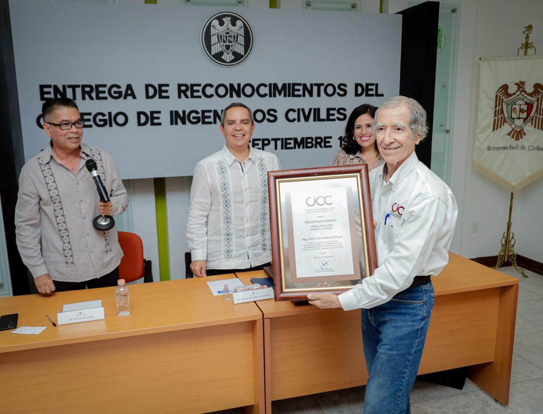 En un evento celebrado en el Campus Central, el Colegio de Ingenieros Civiles del Estado de Colima entregó reconocimientos a 8 de sus miembros destacados, entre ellos 6 exdirectores de la Facultad de Ingeniería Civil de la Universidad de Colima (UdeC).