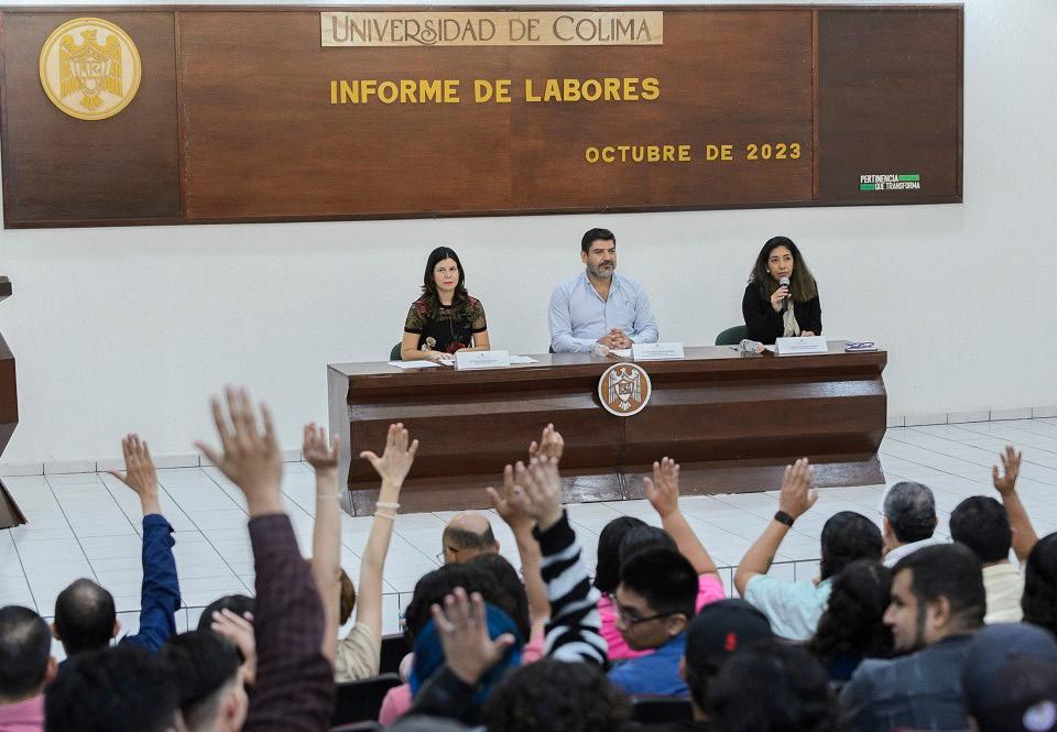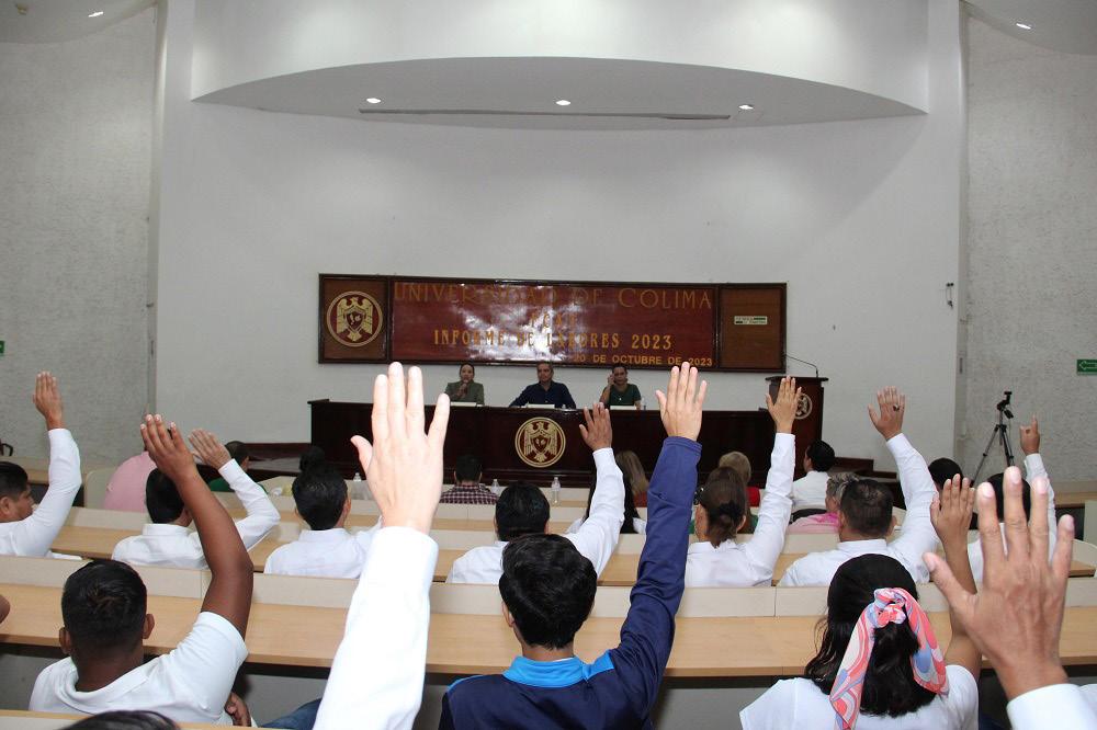Luego de atestiguar los informes, en nombre del Rector Christian Torres Ortiz, el delegado de Colima, Juan Diego Gaytán Rodríguez explicó que este ejercicio de rendición de cuentas