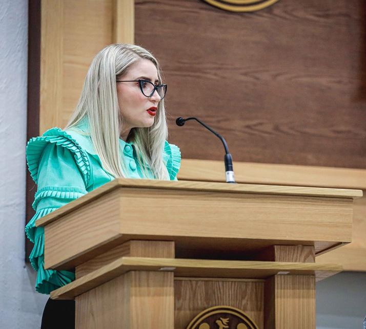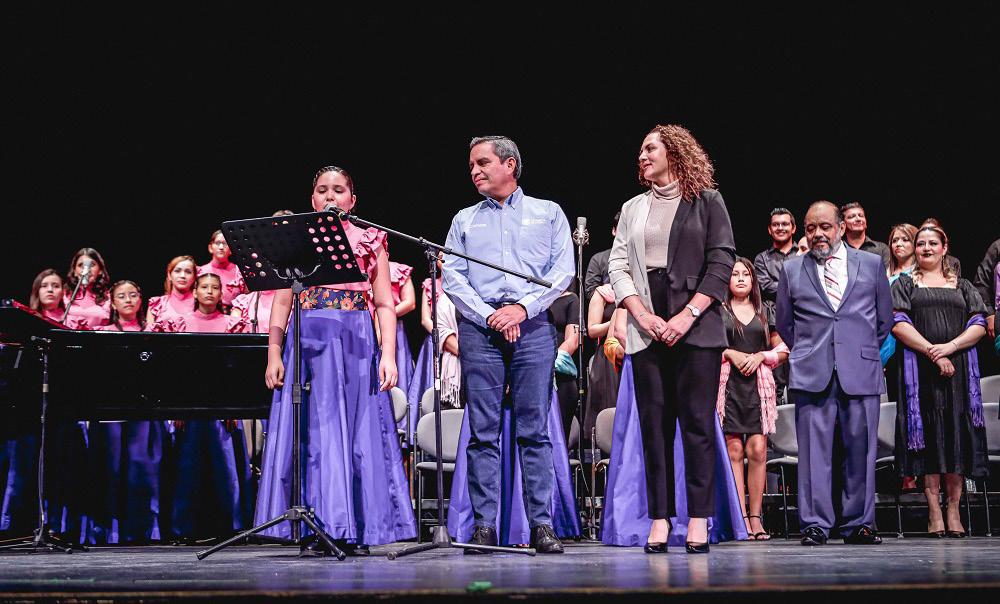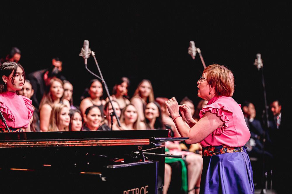 Aranza Pérez Solano, dijo que en esta velada las voces corales de la Universidad se unieron para cantarle a una institución que le ha dado la oportunidad a miles de colimenses de formarse, soñar y crecer; “durante los ensayos para el concierto pensé en el papel tan importante que tienen el arte y la cultura, pues nos permiten explorar universos de emociones, conectar con otras personas y convivir con otras realidades”.