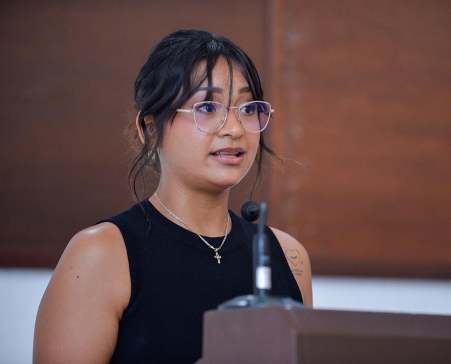 “es un reflejo del esfuerzo de todas las personas que nos acompañaron durante casi 5 años. Hoy nos llevamos esta distinción con orgullo, pero a la vez con el compromiso de seguir mejorando para ser profesionales exitosos, recordando que el final de un capítulo es la continuación de uno nuevo”. Agradeció a las y los profesores por su enseñanza, atención, compañerismo y dedicación. “Sin duda, sin su ayuda no habríamos podido llegar hasta donde estamos hoy. Gracias por mostrarnos la gran labor de la enseñanza, por explicar las cosas más de 3 veces, ya que, gracias a su gran trabajo, lograron formarnos de manera profesional”.