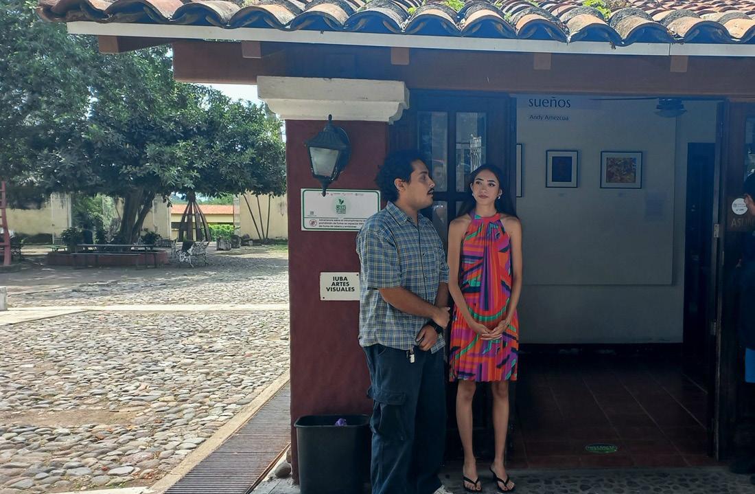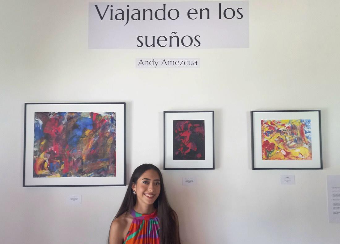 Acompañada por amigos, compañeros y docentes, Andy Amezcua inauguró la exposición “Viajando en los sueños”, en el Muro Km10 del Departamento de Artes Visuales del Instituto Universitario de Bellas Artes (IUBA) de la Universidad de Colima (UdeC), en la Exhacienda de El Cóbano.
