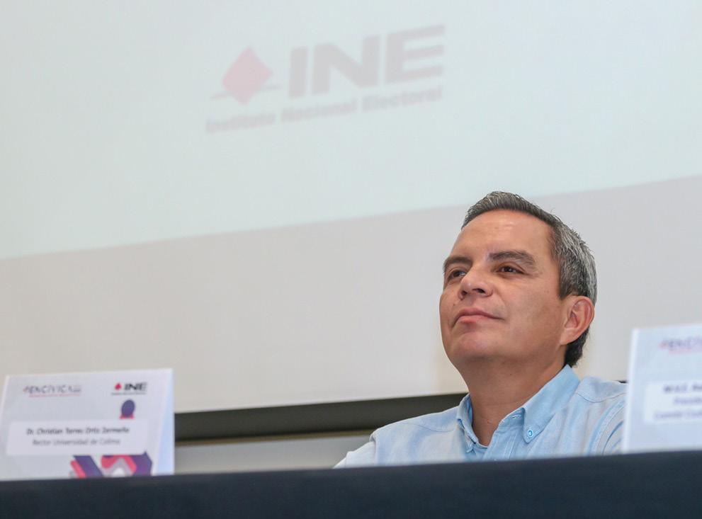En su intervención, el Rector señaló que “la Universidad de Colima se suma a este esfuerzo, pues coincide con el propósito institucional de formar a las y los mejores ciudadanos, conocedores de sus derechos y obligaciones; la UdeC y el INE compartimos el interés por atender a los grupos en situación de exclusión o desventaja y coincidimos también en la intención de fomentar una ciudadanía activa, integral, que permita la transición a sociedades más justas y democráti-