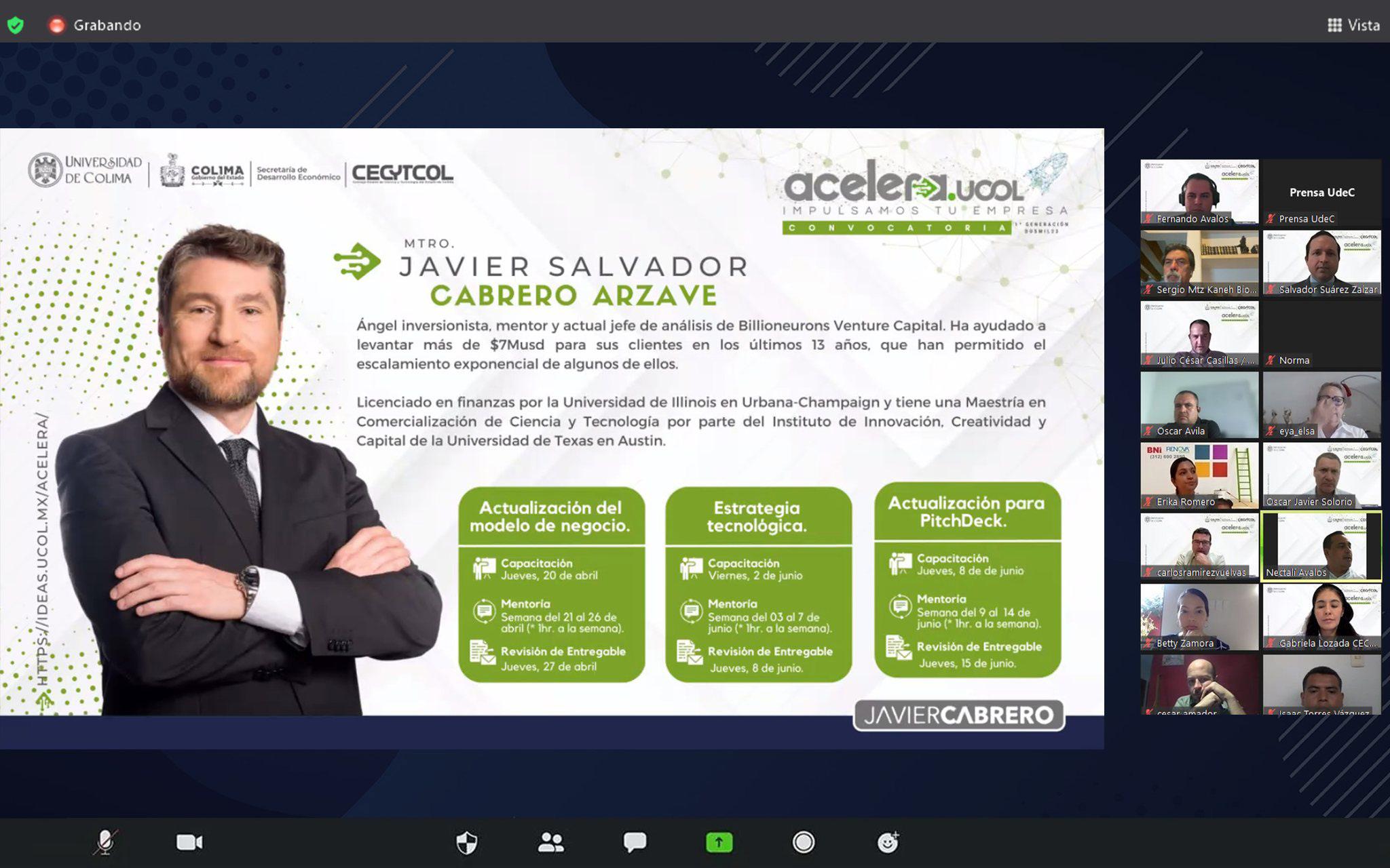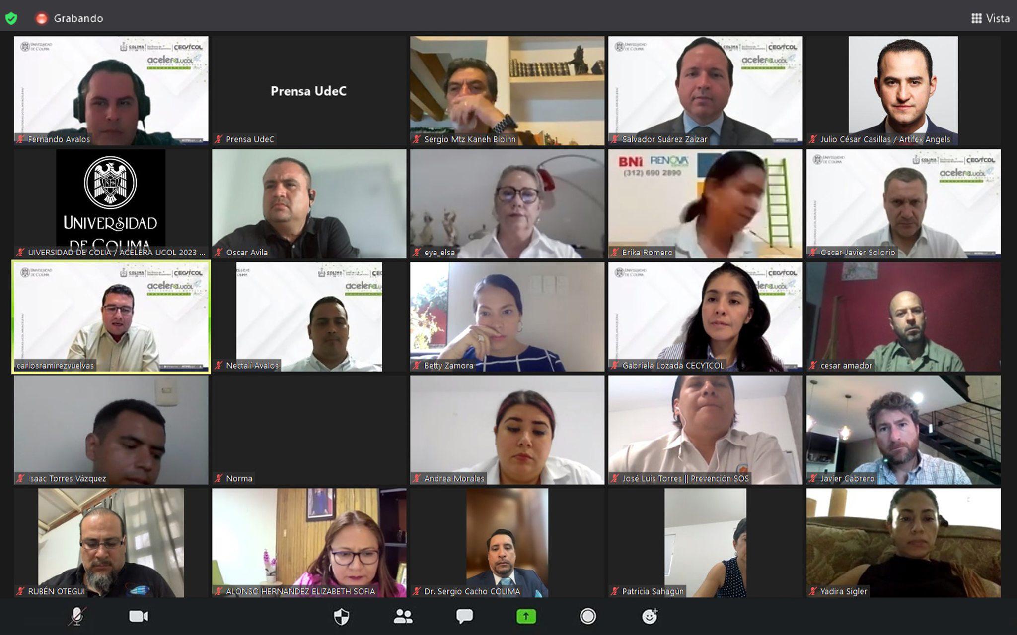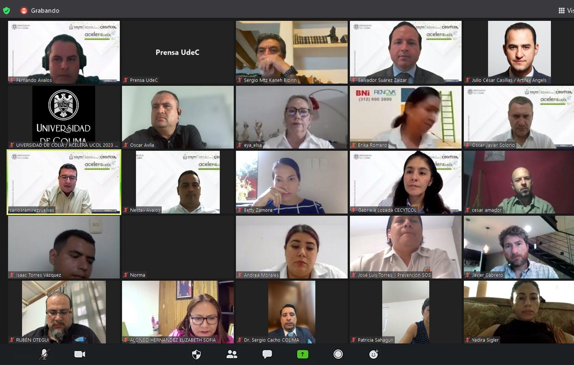 En ceremonia virtual, iniciaron las actividades del programa Acelera Ucol DOSMIL23, mediante el cual la Universidad de Colima, en vinculación con el Consejo Estatal de Ciencia y Tecnología y la Secretaría de Desarrollo Económico del Gobierno del estado, apoyará a 11 empresas con alto potencial escalable a transformarse en empresas de alto impacto.
