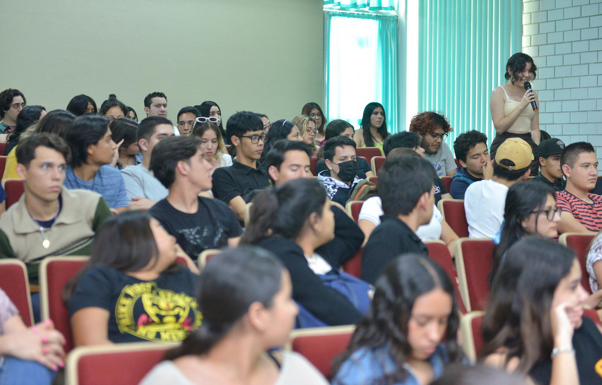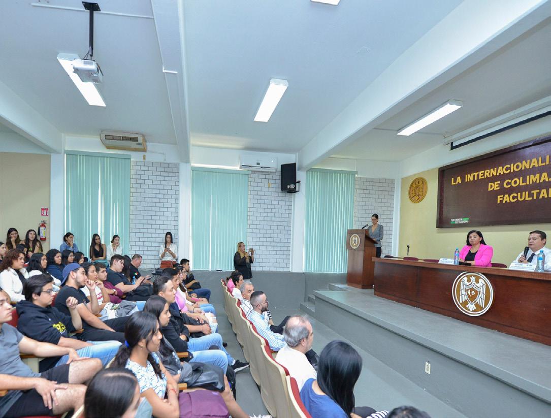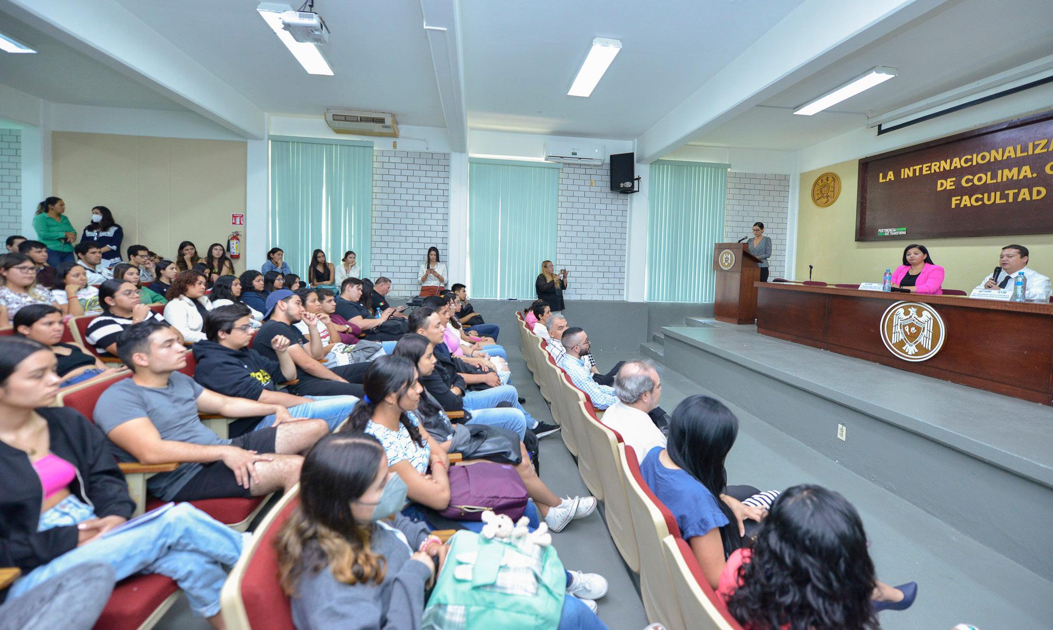 Ana Cecilia García Valencia, directora general de Relaciones Internacionales y Cooperación Académica, impartió la charla: “La internacionalización de la UdeC. Caso de éxito: Facultad de Economía”, en el Auditorio de Humanidades del Campus de Villa de Álvarez, ante jóvenes y docentes de esta facultad.