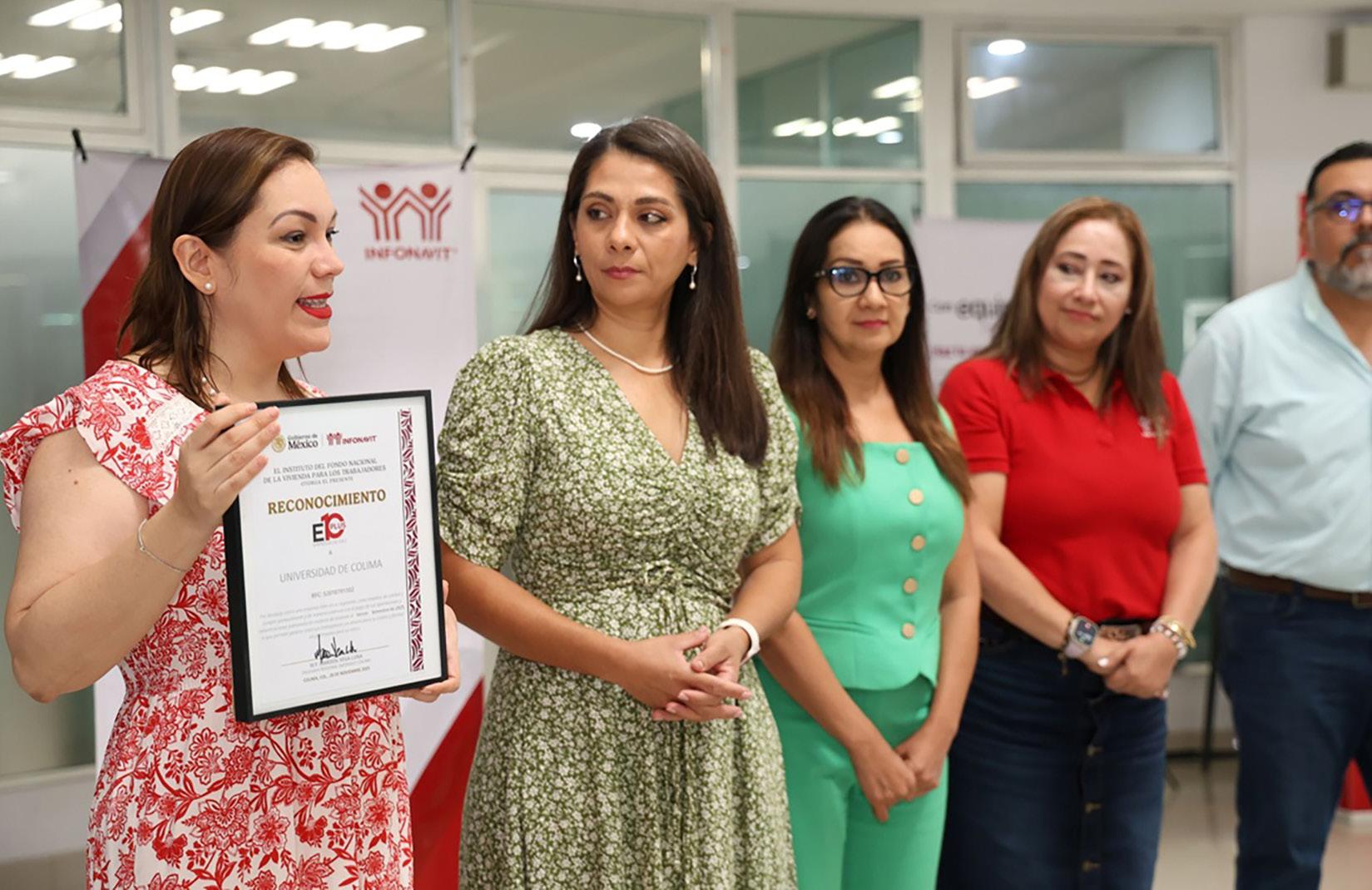 l Instituto del Fondo Nacional de la Vivienda para los Trabajadores (InfonavIt) otorgó un reconocimiento a la Universidad de Colima (UdeC) como Empresa de Diez Plus, por destacar como líder, crear empleos de calidad y cumplir puntualmente con el pago de aportaciones y amortiza-
