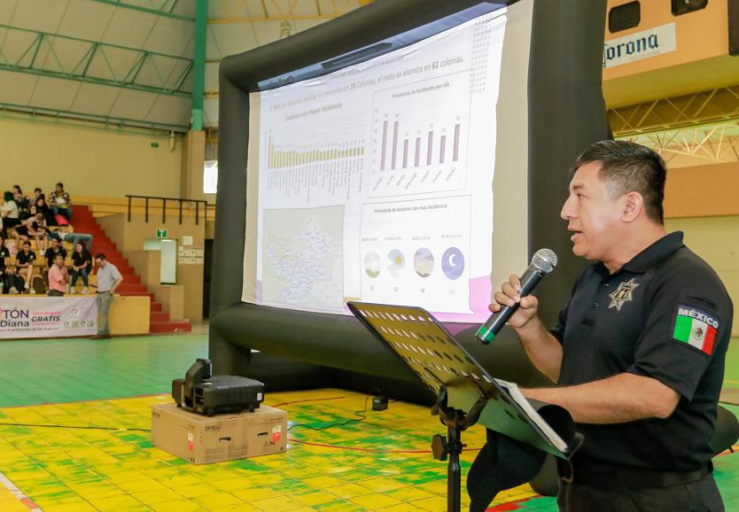 En la presentación, el capitán Inocencio Guzmán de la Peña, director general de Seguridad Pública, Tránsito, Vialidad y Protección Civil de Villa de Álvarez, dio datos de la situación de violencia que se vive en el municipio, y que hizo necesaria la creación de esta aplicación, que es gratuita y todas las personas pueden descargar para iOS o Android.