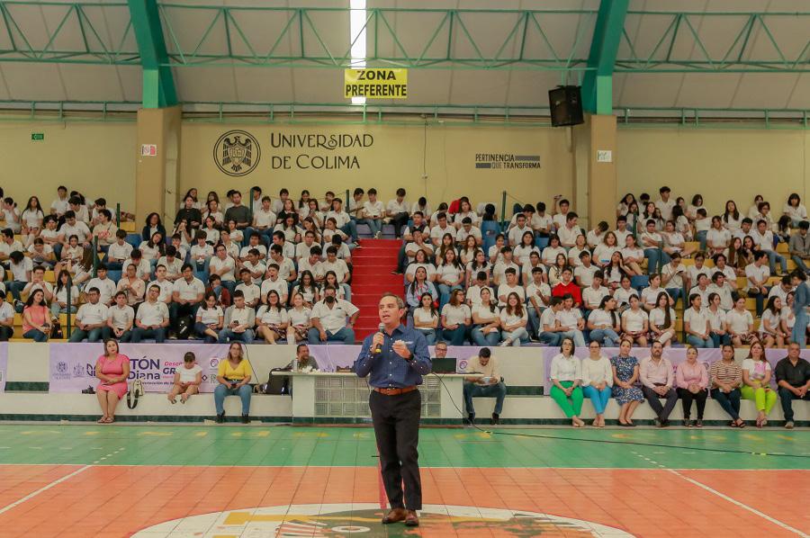 La presidenta municipal de Villa de Álvarez, Tey Gutiérrez, dijo que durante su labor como docente vio a muchos jóvenes que sufrían de violencia y acoso, por lo que invitó a las y los estudiantes universitarios presentes que hicieran una reflexión al respecto; “cuántos se han sentido violentados, acosados o en peligro incluso en las calles y el transporte público, por ese motivo ponemos
