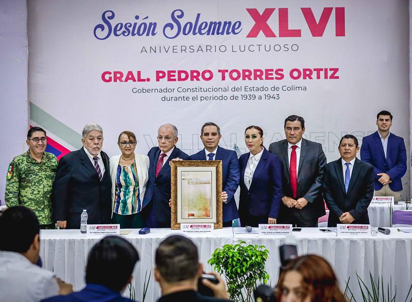 Para reconocer la gran trayectoria de este personaje nacido en Villa de Álvarez, y quien en vida fue senador, presidente municipal y gobernador de Colima, el Cabildo acordó varias acciones, entre ellas, una convocatoria mediante la cual se otorgará una presea al mérito cívico con el nombre del General Pedro Torres Ortiz, la cual podrá ser entregada a personas o instituciones que realicen acciones en pro de los derechos de las mujeres, derechos humanos, de los grupos vulnerables y culturales, entre otros.