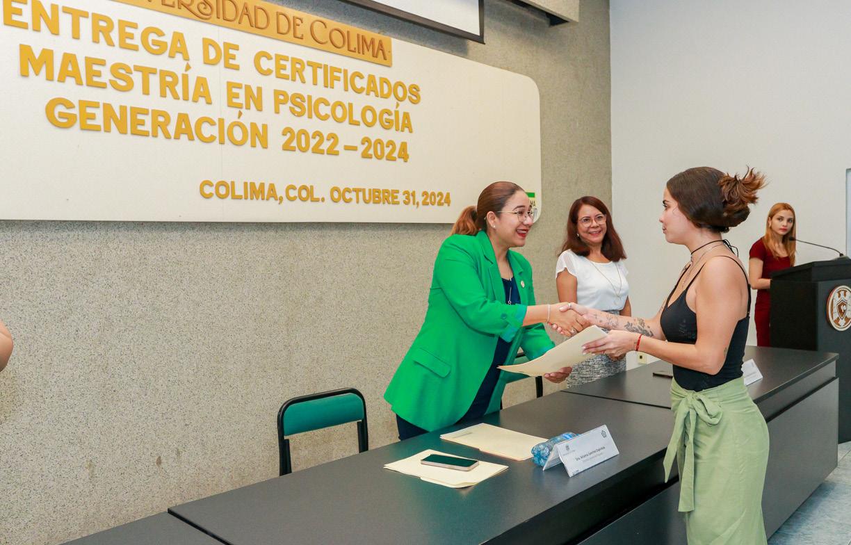 En una ceremonia académica realizada en el auditorio de la Facultad de Psicología se hizo entrega de certificados a 5 estudiantes que culminaron sus estudios de la Maestría en Psicología, generación 2022-2024 de la Universidad de Colima.
