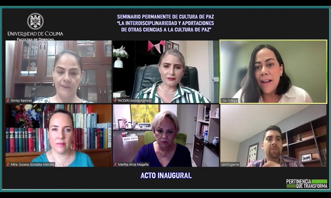 Organizado por la Facultad de Derecho de la Universidad de Colima, se realizó el Seminario Permanente de Cultura de Paz “La Interdisciplinariedad y aportaciones de otras ciencias a la Cultura de Paz”, en el que participaron catedráticos, investigadores y estudiantes de 10 instituciones de educación superior de México, Chile y Colombia.