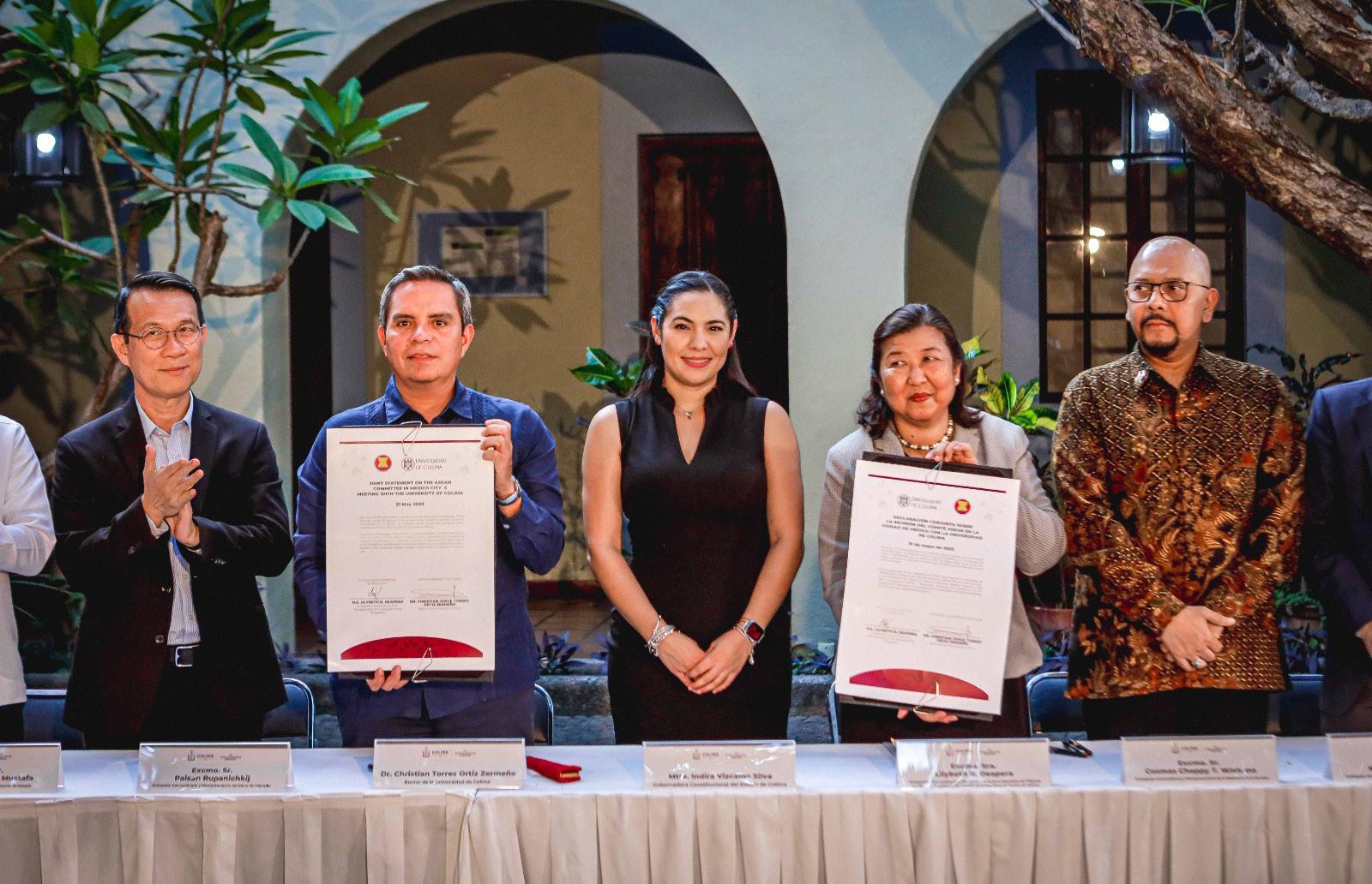 En una ceremonia realizada en el Centro Cultural Nogueras de la Universidad de Colima, la embajadora y los embajadores de los países que integran la Asociación de Naciones del Sudeste Asiático (AseAn, por sus siglas en inglés) firmaron 2 cartas de intención o declaraciones conjuntas, una con Gobierno del estado y la otra con la máxima Casa de Estudios colimense.