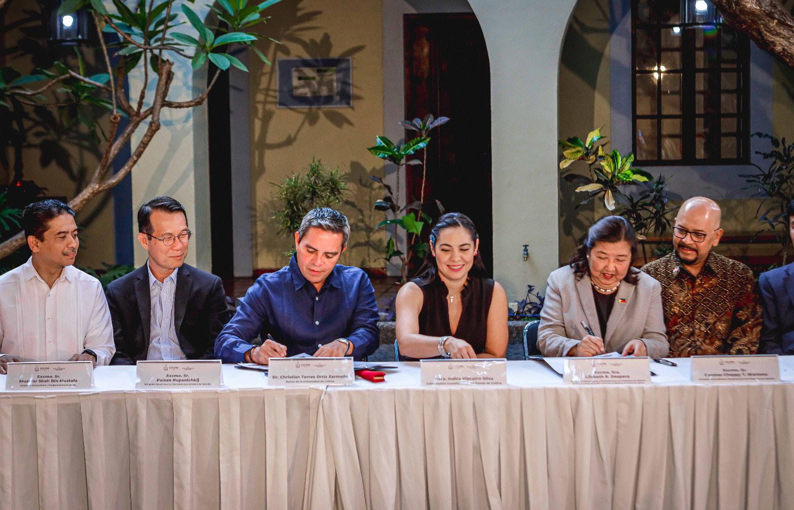 Por la AseAn firmó su presidenta, la Sra. Lilybeth R. Deapera, quien también es embajadora de Filipinas en México; por Colima, la gobernadora Indira Vizcaíno Silva y por la UdeC el rector Christian Jorge Torres Ortiz Zermeño.