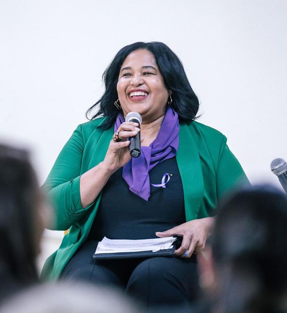 En un segundo momento, se habló de cómo identificar la relevancia del empoderamiento femenino, con el propósito de reconocer los momentos en donde han sido fuente de inspiración para otras mujeres desde su ámbito profesional. Así, señalaron el apoyo de otras mujeres, quienes las impulsaron a continuar para superar sus retos y que, gracias a ellas, hoy pueden ser mujeres profesionales. Además, dieron consejos y recomendaciones basados en sus experiencias de vida y les brindaron herramientas a las mujeres presentes, reiterando la sororidad como principal recomendación; es decir, el apoyo entre mujeres, el ayudarse unas a otras para salir adelante. Por último, la presidenta del Voluntariado enfatizó que “unidas siempre seremos más fuertes; este centro se caracteriza porque el mayor número de usuarios son mujeres y estas actividades las hacemos pensando en ustedes y sus familias. En la UdeC nos preocupamos por traerles información, talleres y charlas de utilidad. Siempre es importante una ayuda, un apoyo, y para eso estamos aquí”.