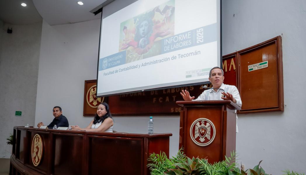 La Facultad de Contabilidad y Administración de Tecomán (FCAT) de la Universidad de Colima presentó su Informe de Labores 2025, en una ceremonia que encabezó el Rector Christian Jorge Torres Ortiz Zermeño, en el auditorio principal del Centro de Tecnología Educativa del Campus La Estación.