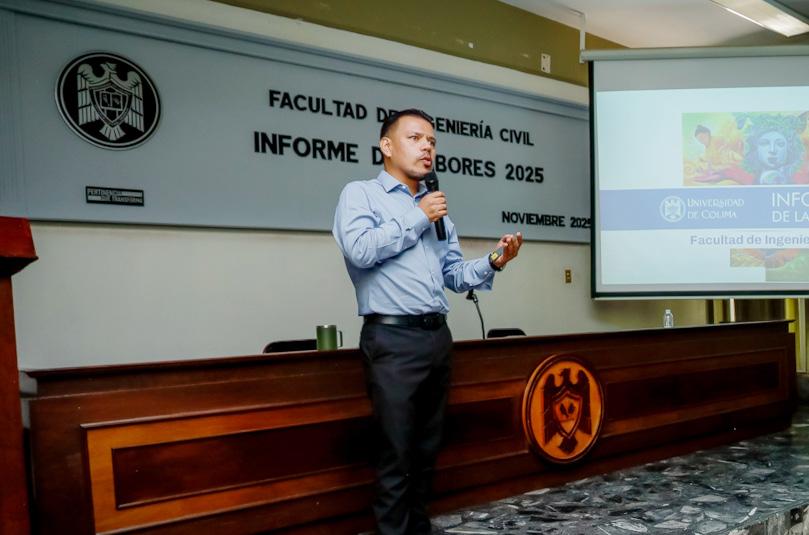 nistrativos y 3 personas de servicios. Resaltó además una tasa de retención del 82.2% en Ingeniería Civil y de 82% en Topógrafo Geomático. En cuanto a vinculación con el entorno, López de la Cruz señaló que se realizaron múltiples proyectos de aplicación real, como el levantamiento topográfico de todo el Campus Colima, un estudio biológico para el municipio de Cuauhtémoc por problemas de inundaciones, y asesorías para Conagua y el Bachillerato 32 en