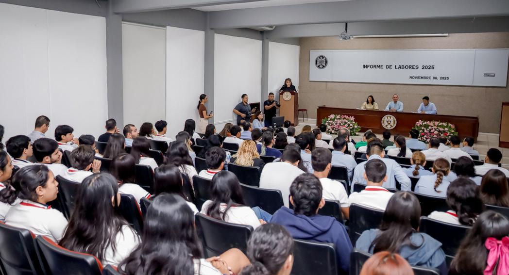 en un año de logros académicos, investigación relevante y una profunda vinculación con la sociedad. En ese sentido, resaltó que la matrícula escolar está compuesta por 434 mujeres y 292 hombres, desmintiendo estereotipos de género en estas carreras. Además, para el plantel la formación continua fue prioritaria, con 60 docentes capacitados en áreas pedagógicas, didácticas, digitales y de inclusión. También, 607 estudiantes participaron en actividades de orientación educativa y vocacional en 2025.