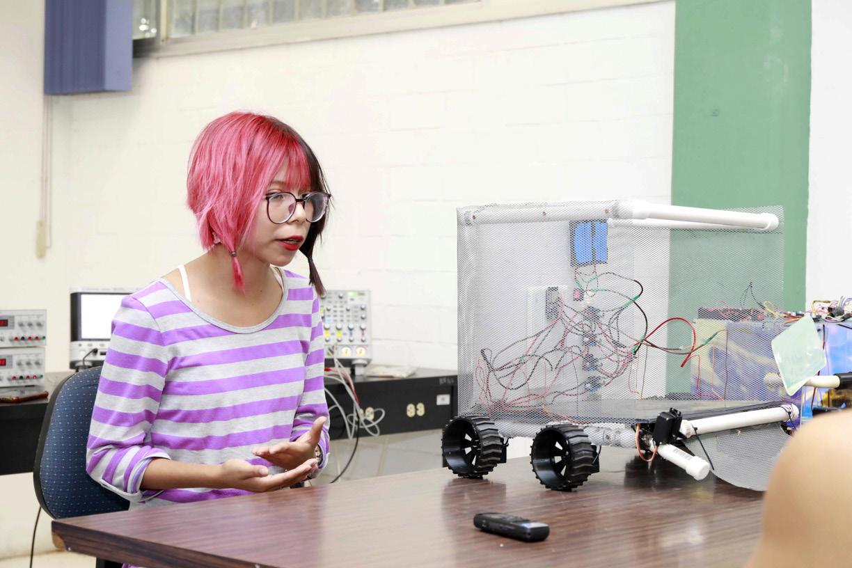 expresó el estudiante de segundo semestre, Jorge Luis Pizano Saucedo. Él y Karen López hablaron en representación de todos sus compañeros de grupo, sobre la experiencia de fabricación de estos robots móviles limpiadores de playas.
